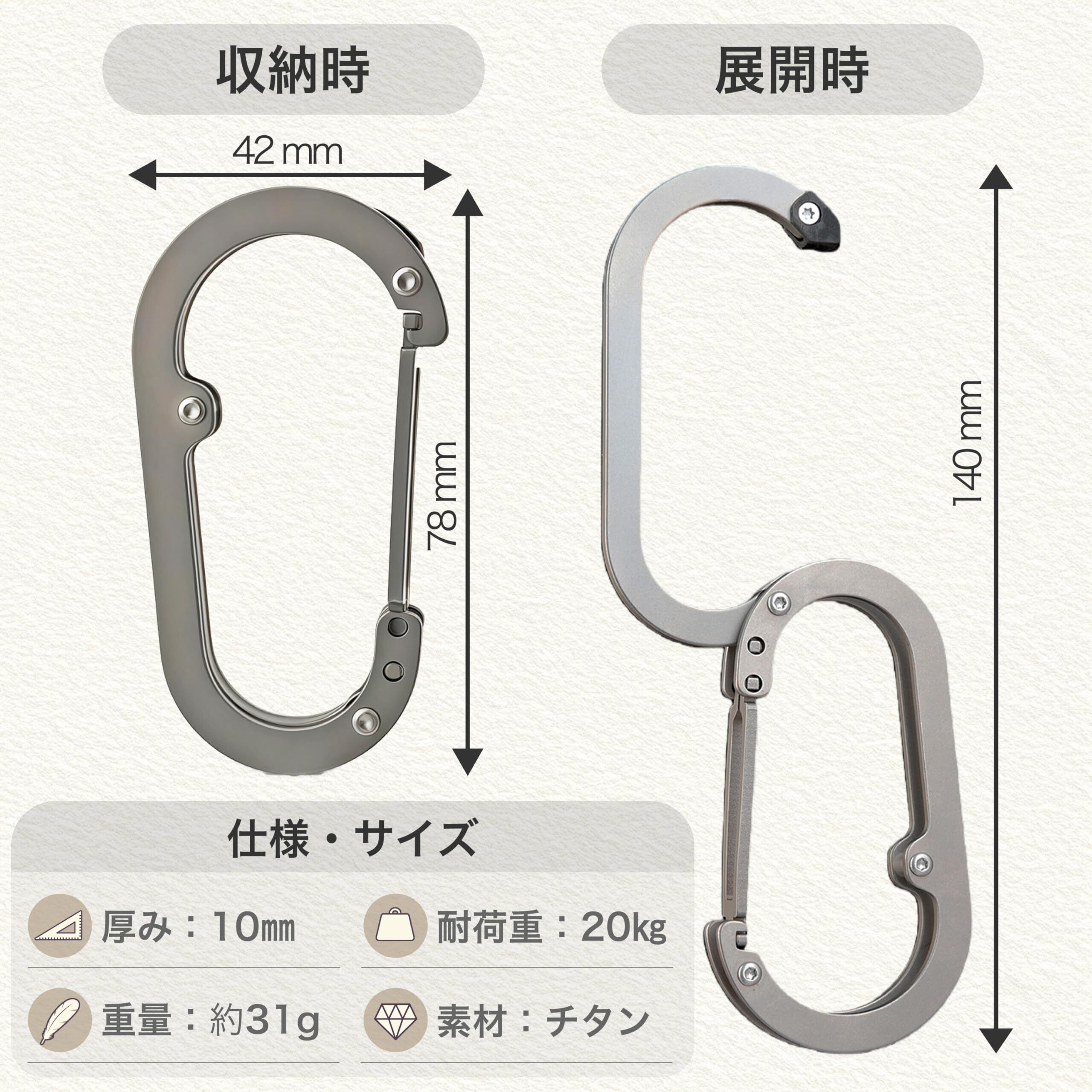 【人気商品】チタン バッグハンガー カラビナ型 フック S字フック キーホルダー TiHook2 超軽量31g 耐荷重20kg コンパクト 携帯便利 便利グッズ カフェ オフィス 外出用 旅行用
