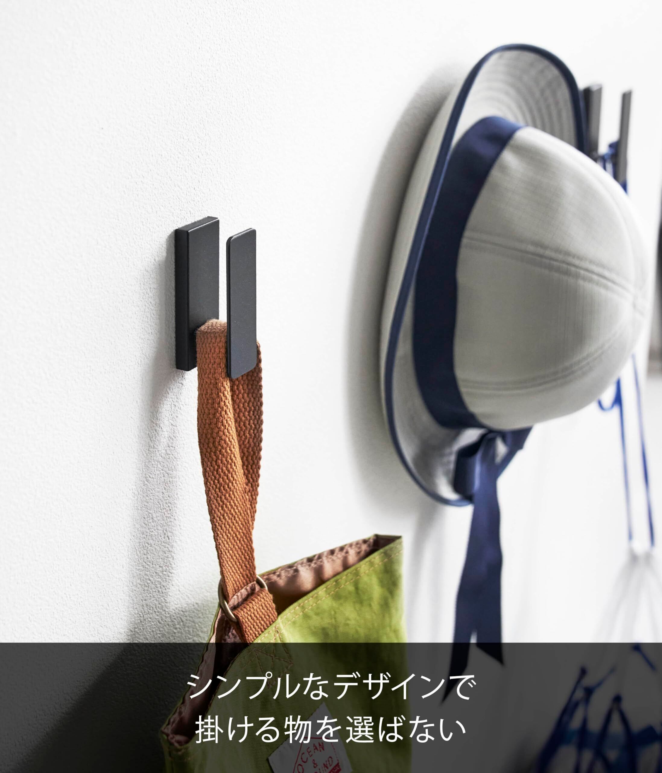 山崎実業(Yamazaki) 【石こうボードピンセット・木ネジ 付属】 ウォールフック 3個組 石こうボード壁対応 ブラック W2.4×D3×H6.5cm(1つあたり) タワー tower ウォールハンガー 壁掛けフック 穴が目立たない 1689