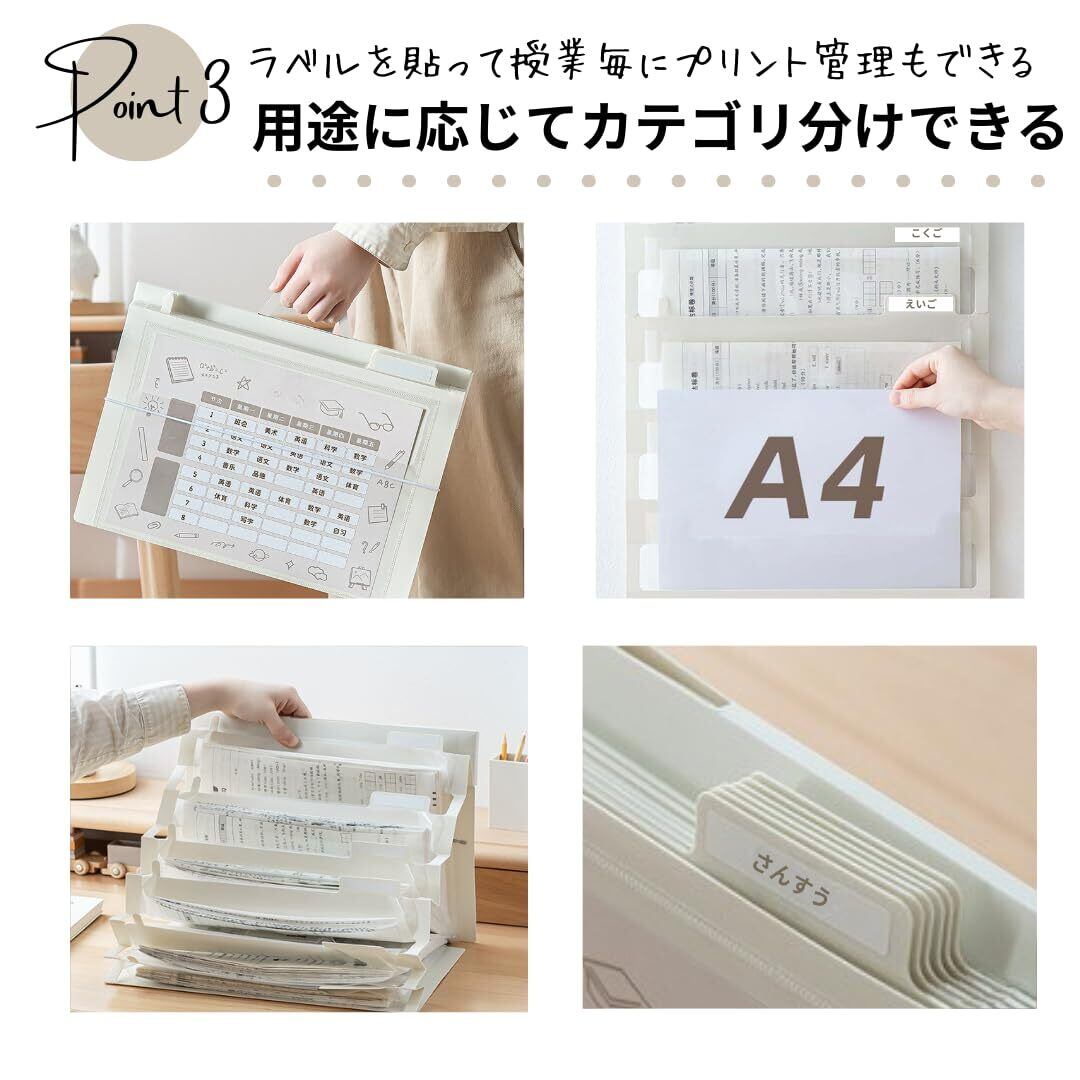 【時間割・お便り管理に最適】学校の時間割、塾のお知らせ、PTAの連絡表…毎日の確認が必要な書類を、ひと目で見える形にまとめられる6段クリアポケット。下部の透明スペースには時間割表を入れられ、スケジュール把握に大活躍します。