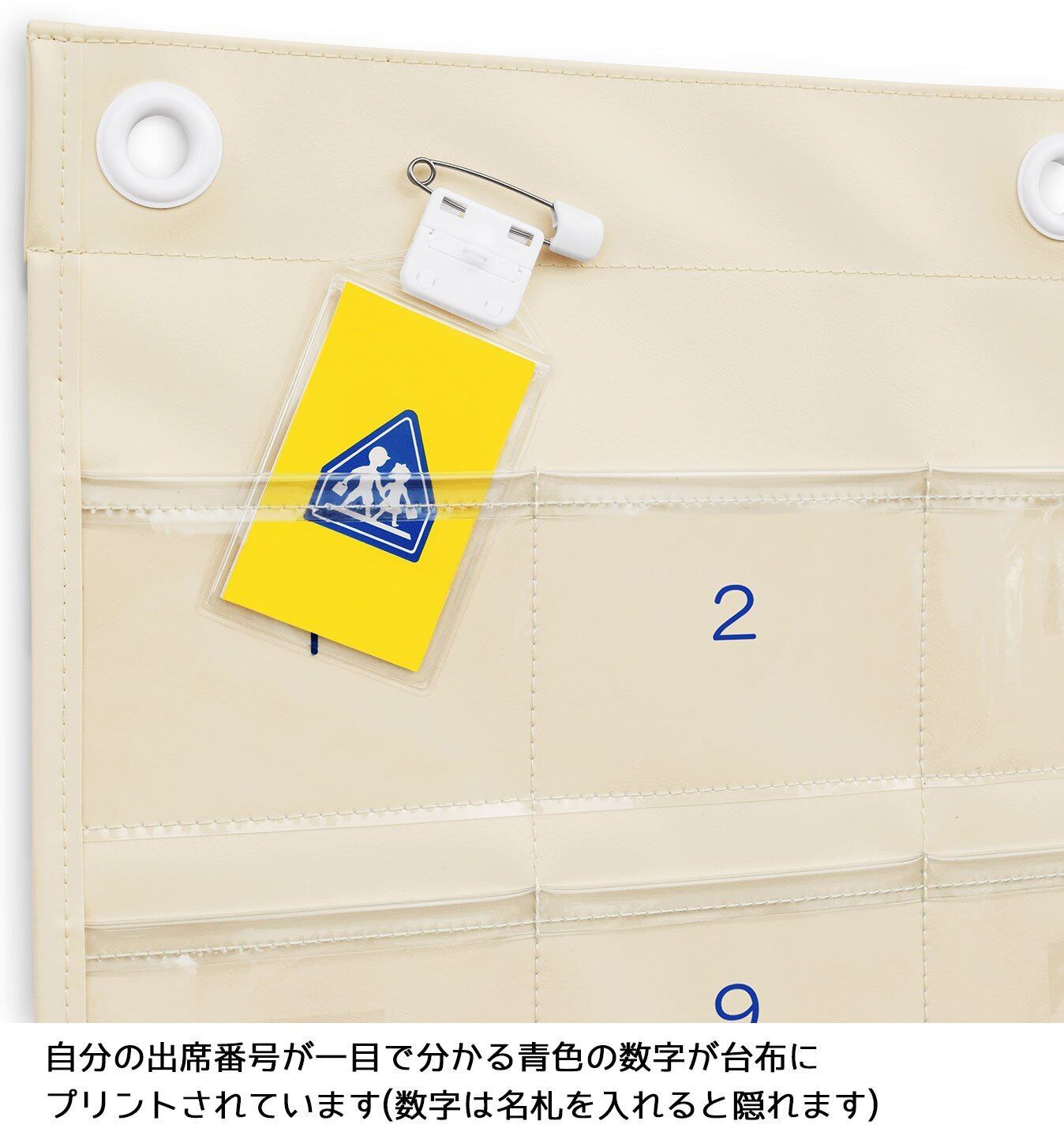 台布には数字を印字。クリアポケットなので見やすく、出席番号での管理も簡単。