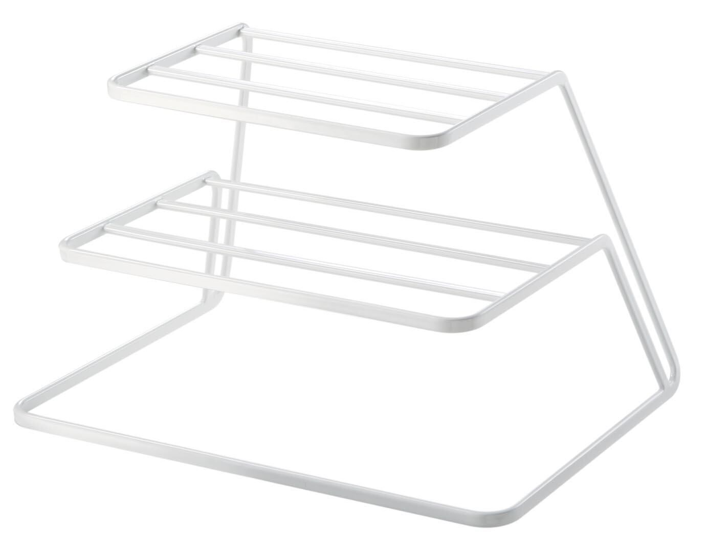 【材質】スチール【塗装】粉体塗装【サイズ】幅265×奥195×高165(mm)【生産国】中国【ブランド】山崎実業(ヤマザキジツギョウ)【重量】約510g【耐荷重】約1.5kg ※直径15~26cmのお皿が、各段に約6~8枚程度収納できます。(お皿の厚さにより異なります) ※こちらの商品は【完成品】です
