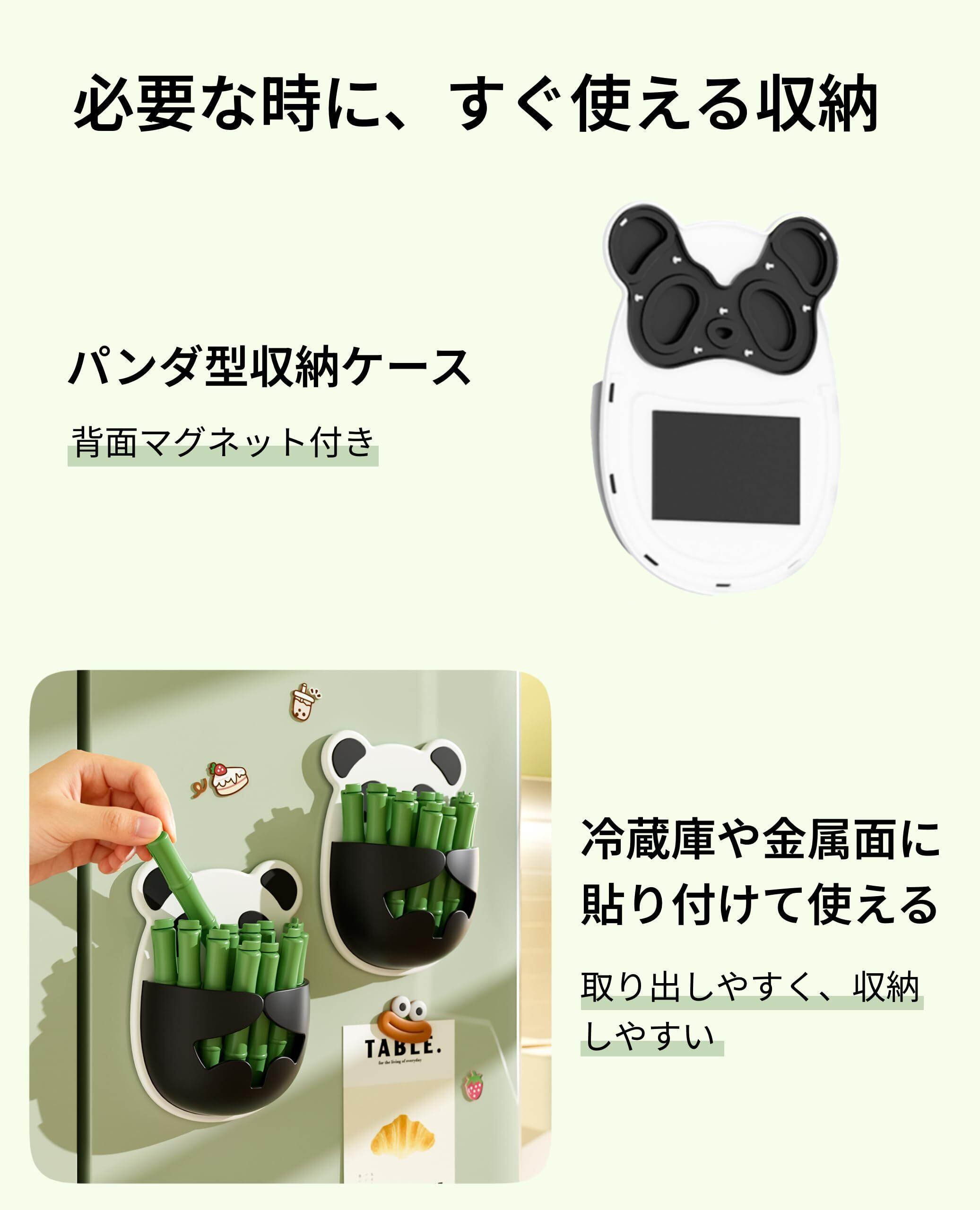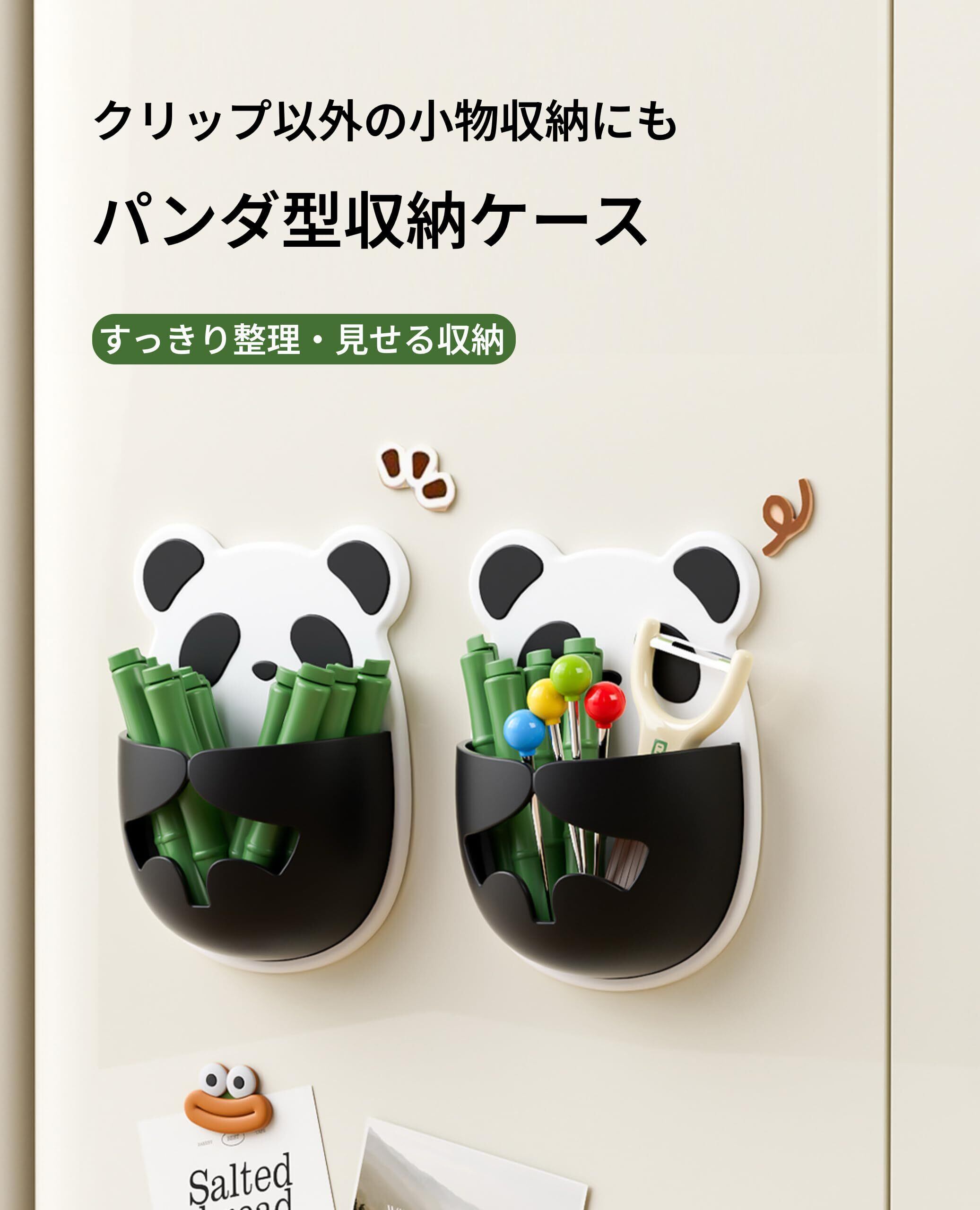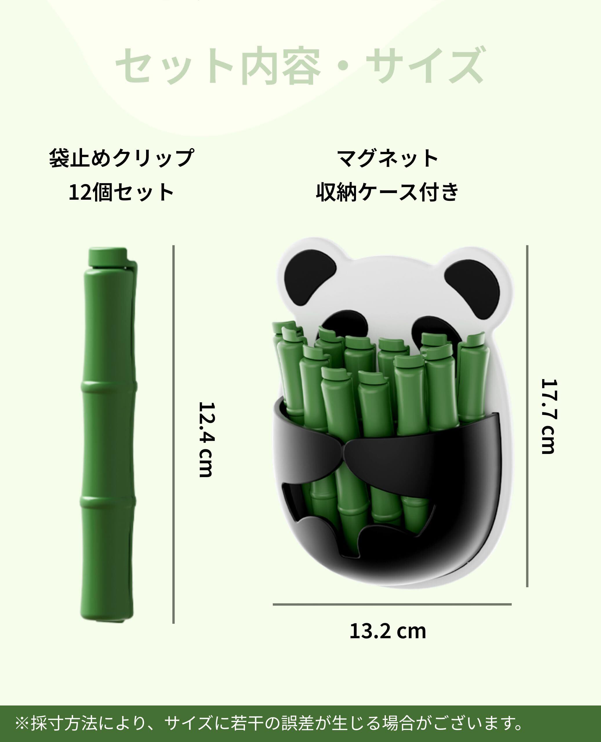 ・セット内容:竹モチーフ袋止めクリップ×12個、パンダ型収納ケース×1個、専用マグネットシール