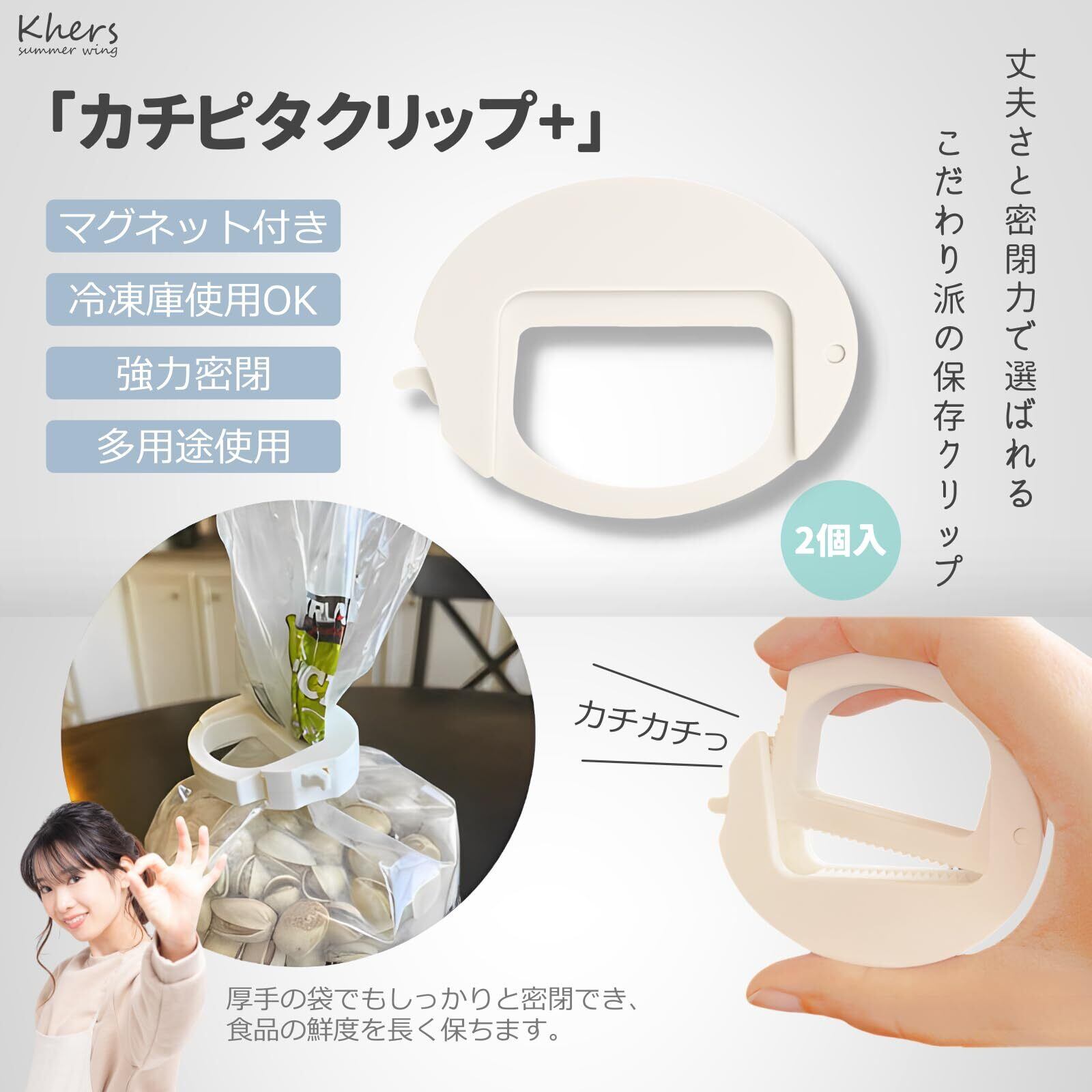 「カチピタクリップ+」 袋止めクリップ 強力 密閉 袋止め 2個入り (ブルー)