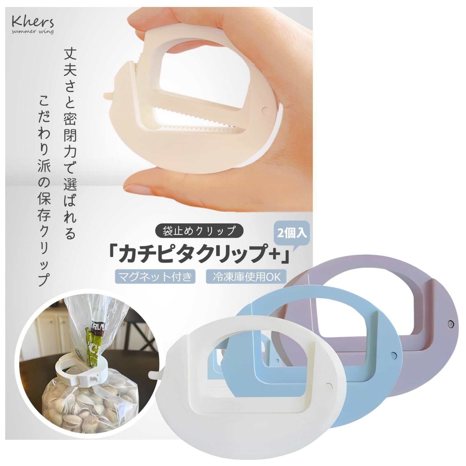 【特価セール】「カチピタクリップ+」 袋止めクリップ 強力 密閉 袋止め 2個入り (ブルー)