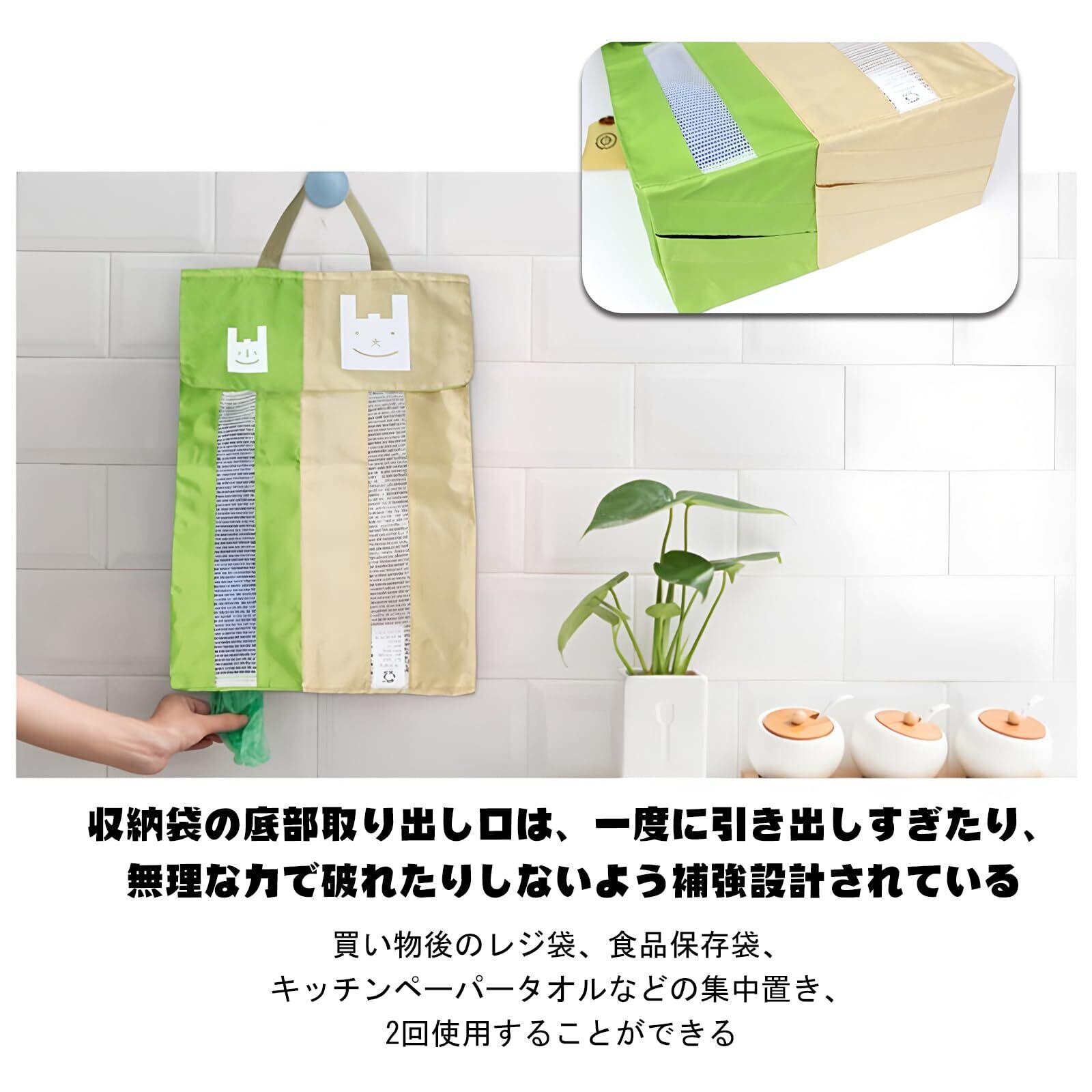 【在庫セール】レジ袋ストッカー 壁掛け 大小仕分け ポリ袋ストッカー 壁掛け ゴミ袋ストッカー 中身が見える プラスチックバッグホルダー 大容量 サッと取り出せ便利 ゴミ袋収納 省スペース ごみ袋収納 レジ袋 縦 袋収納 キッチン収納 ビニール袋収納 シューズカバー収納 防水ナイロン (グリーン)