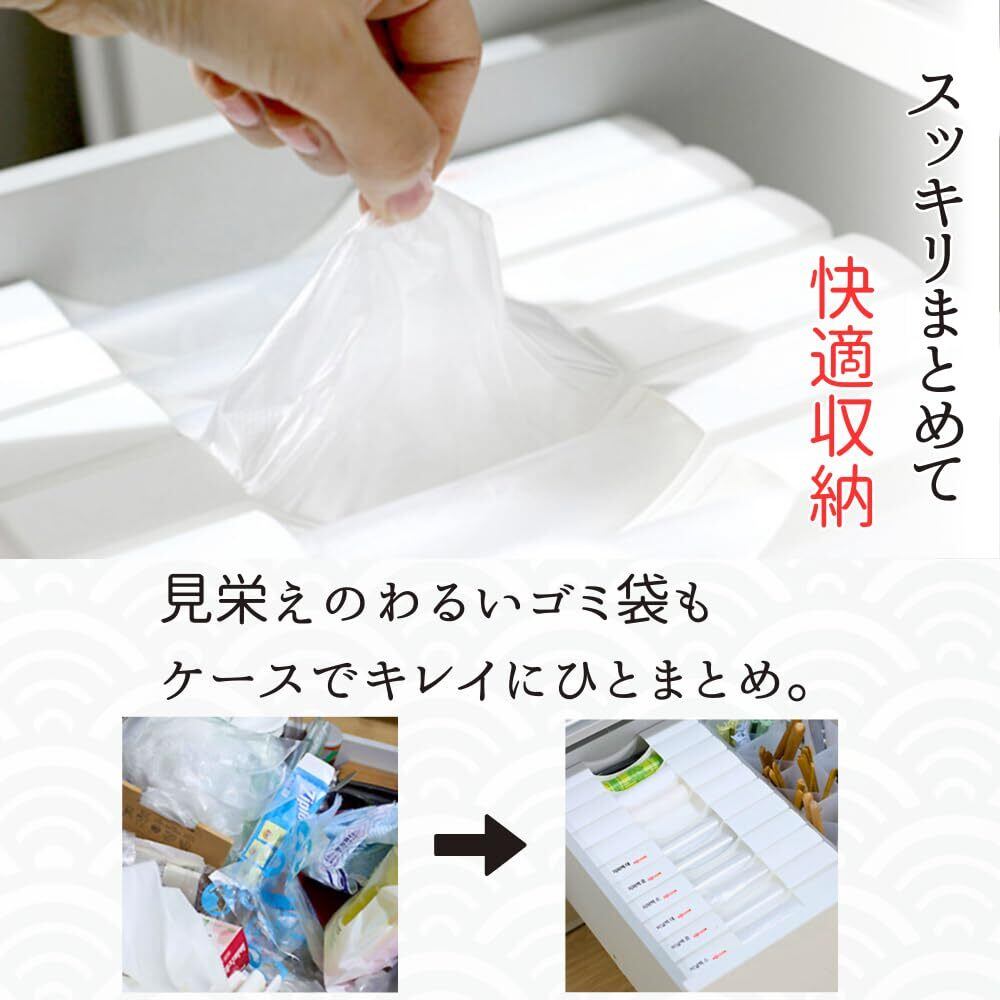 【スッキリまとめて快適収納】かさばって見栄えの悪い予備のゴミ袋、ため込んで溢れている買物袋、引き出しの中で散らばる生ごみ用のビニール袋、もう無秩序な引出しとはサヨウナラ。このケースで散らかる袋を種類ごとにひとまとめ。あなたのイライラを解消する快適収納ケースです。