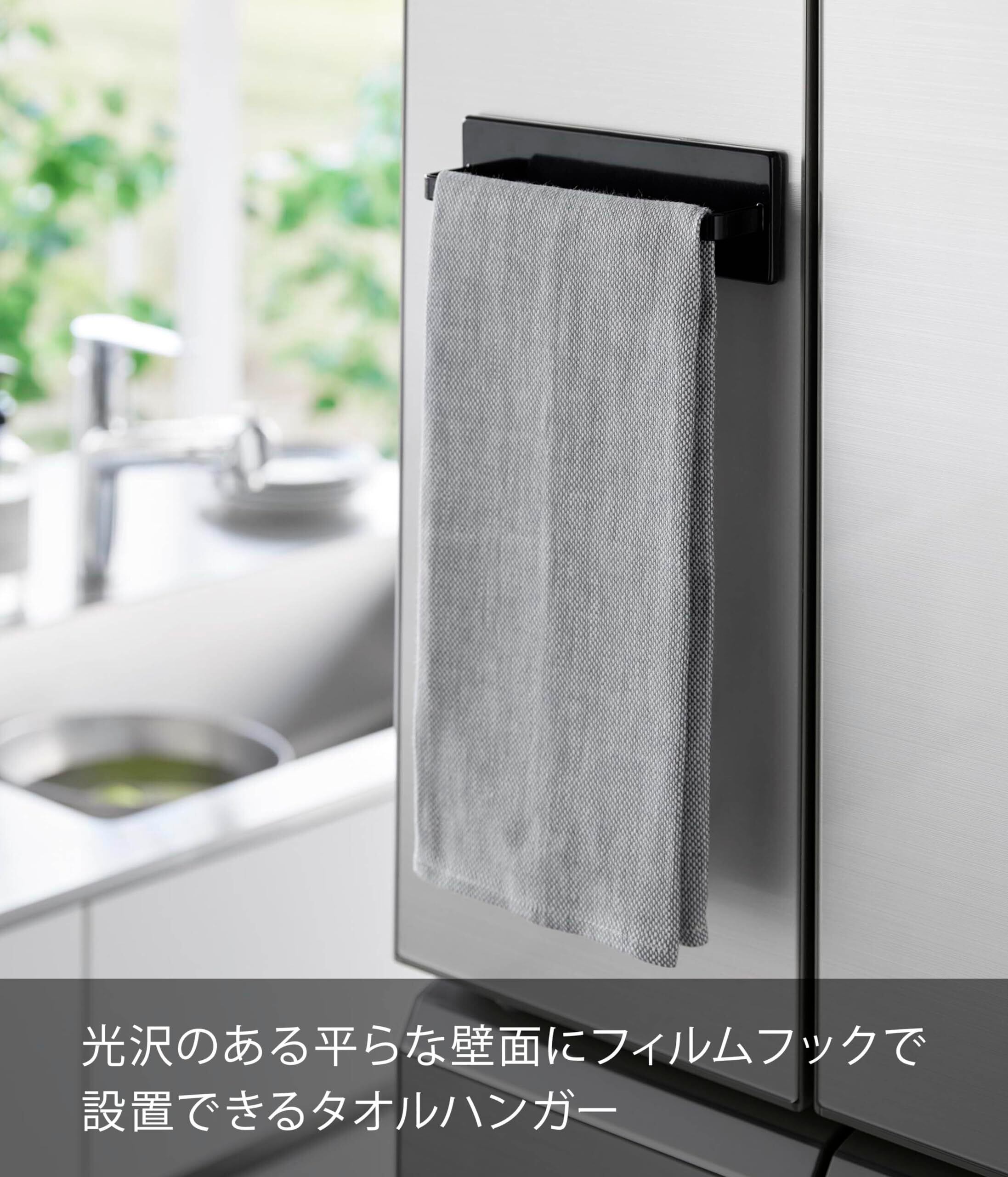 【特価商品】山崎実業(Yamazaki) フィルムフック キッチンタオルハンガー ブラック 本体:W18×D4.5×H6cm タワー tower 浮かせる収納 タオル掛け 2162