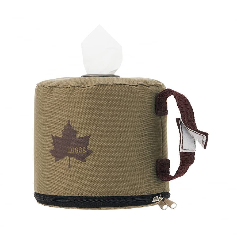 総重量:(約)55g サイズ:(約)直径13×高さ12cm 主素材:[生 地]ポリエステル(PVCコーティング) ワイドサイズのロールペーパーも収納可能。汚れや濡れからロールペーパーを守ります。LOGOS Lifeデザイン