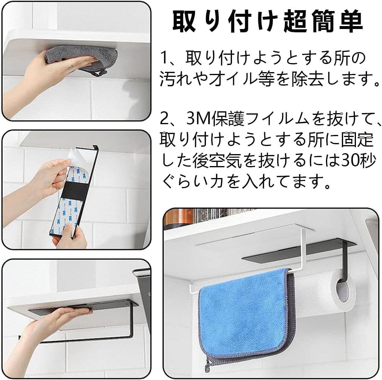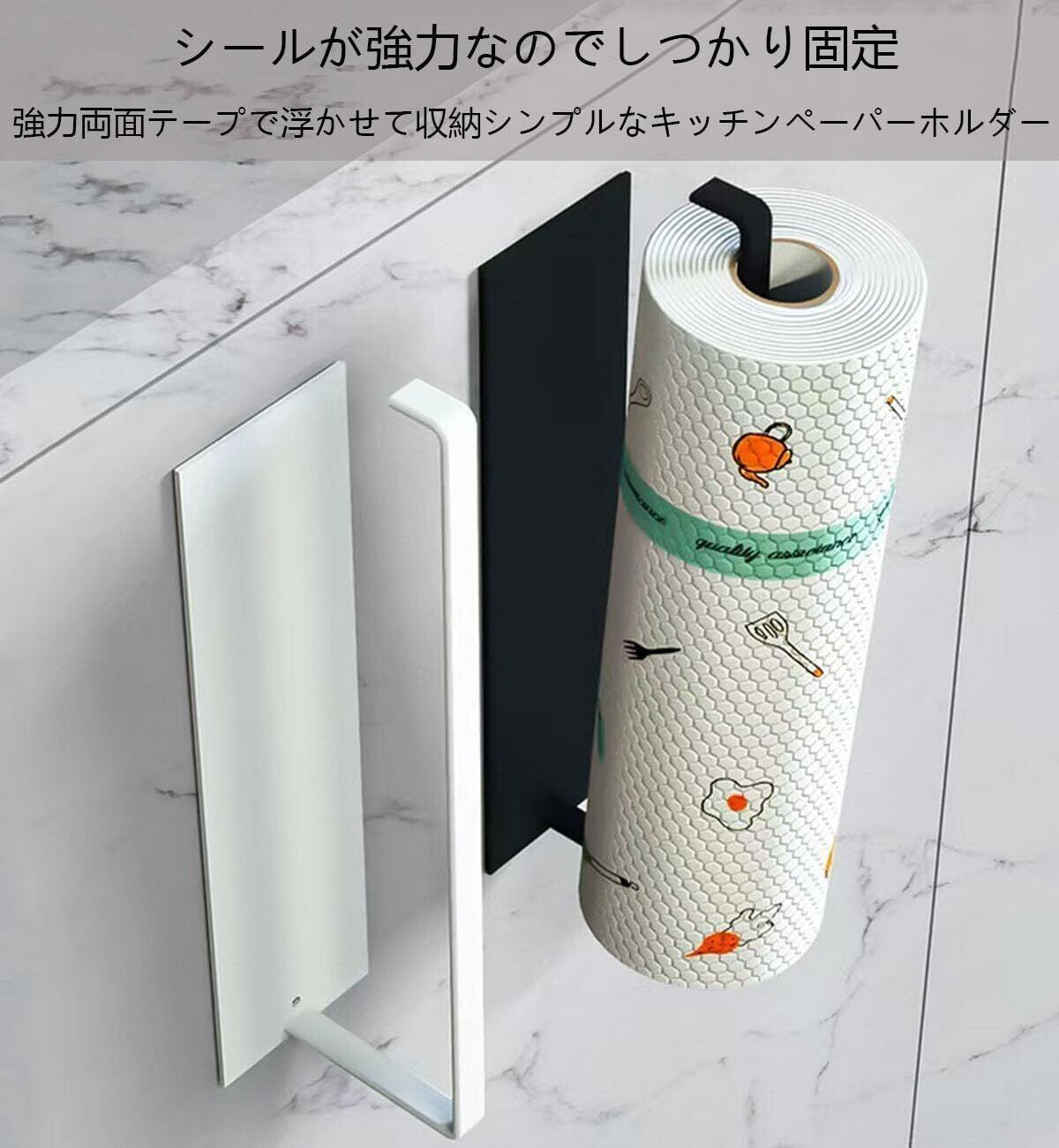 強力粘着式キッチンペーパーホルダー タオルホルダー 3M両面テープ 安定感がよい 片手でカット 縦横設置OK タオル掛け 壁掛け 吊り下げ ステンレス製 浴室 洗面所 キッチン対応 シンプル 1個入 (ホワイト)