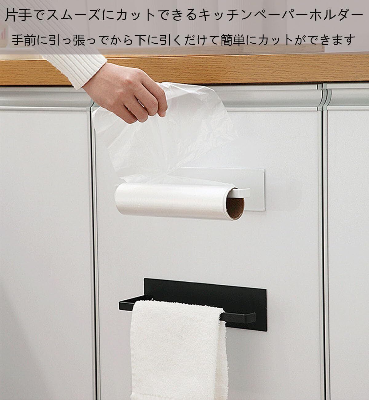 【縦横設置OK!壁面収納に役立ちます】横向きでも使用可能なので、布巾干しやタオル掛けとしてもご使用いただけます。また、キッチンペーパーの代わりに、ロール式のゴミ袋やトイレットペーパーホルダーとしてもお使いいただけます。