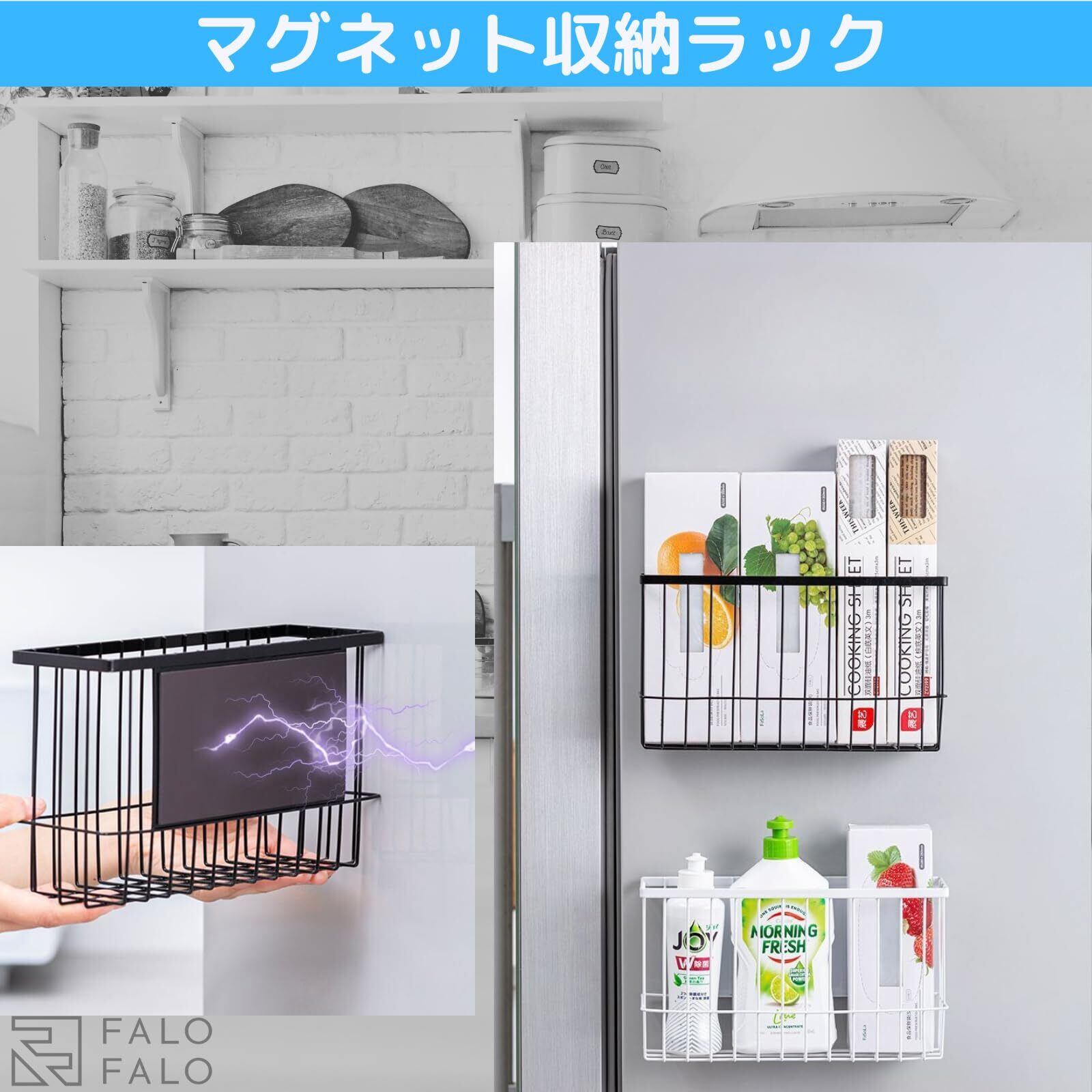 【数量限定】マグネット 収納 ラック キッチン 冷蔵庫 洗濯機 玄関 後付け 収納 強力マグネット スリムデザイン (ホワイト)