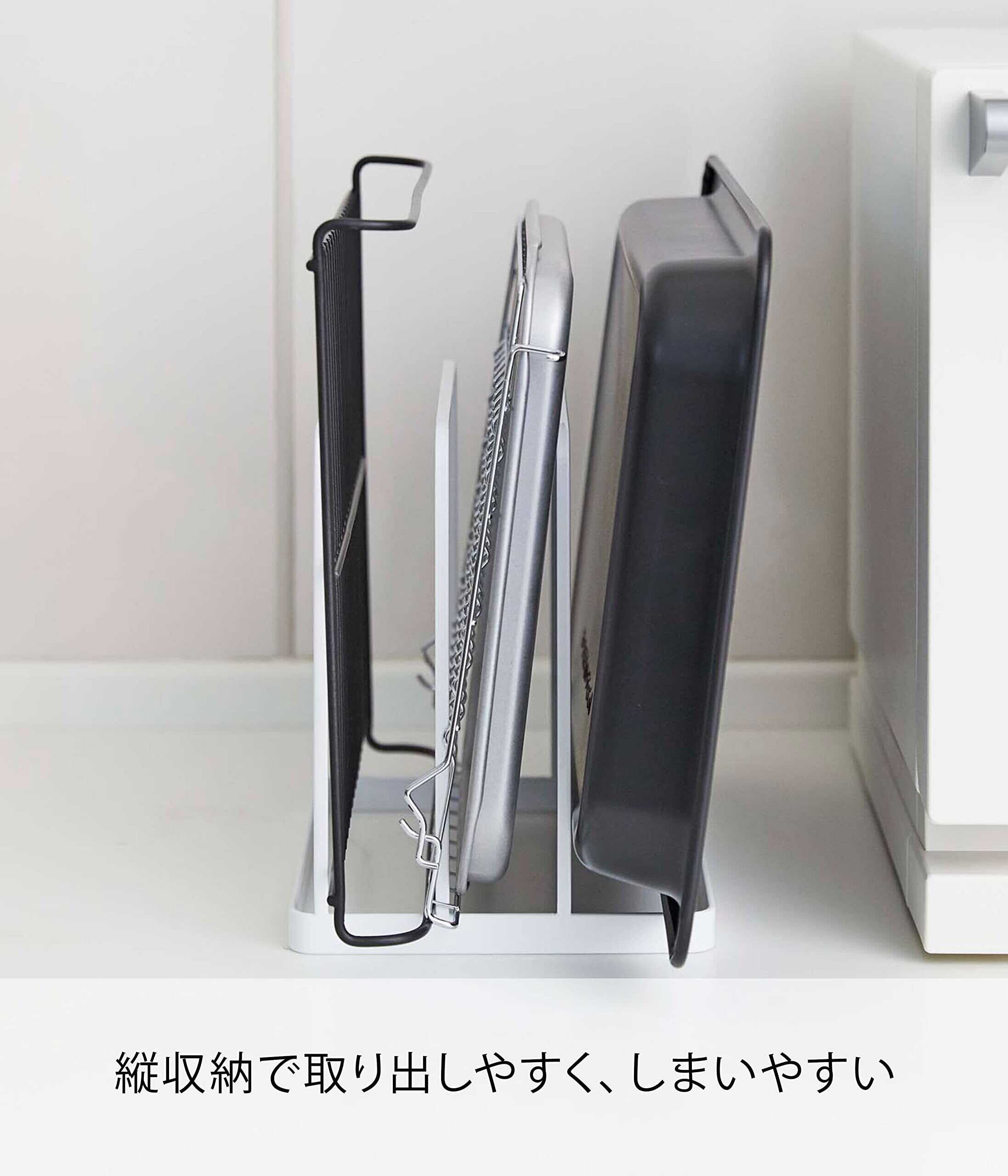 置き場所に困るキッチントレーやオーブン天板をキッチンの隙間に収納できるトレースタンド。