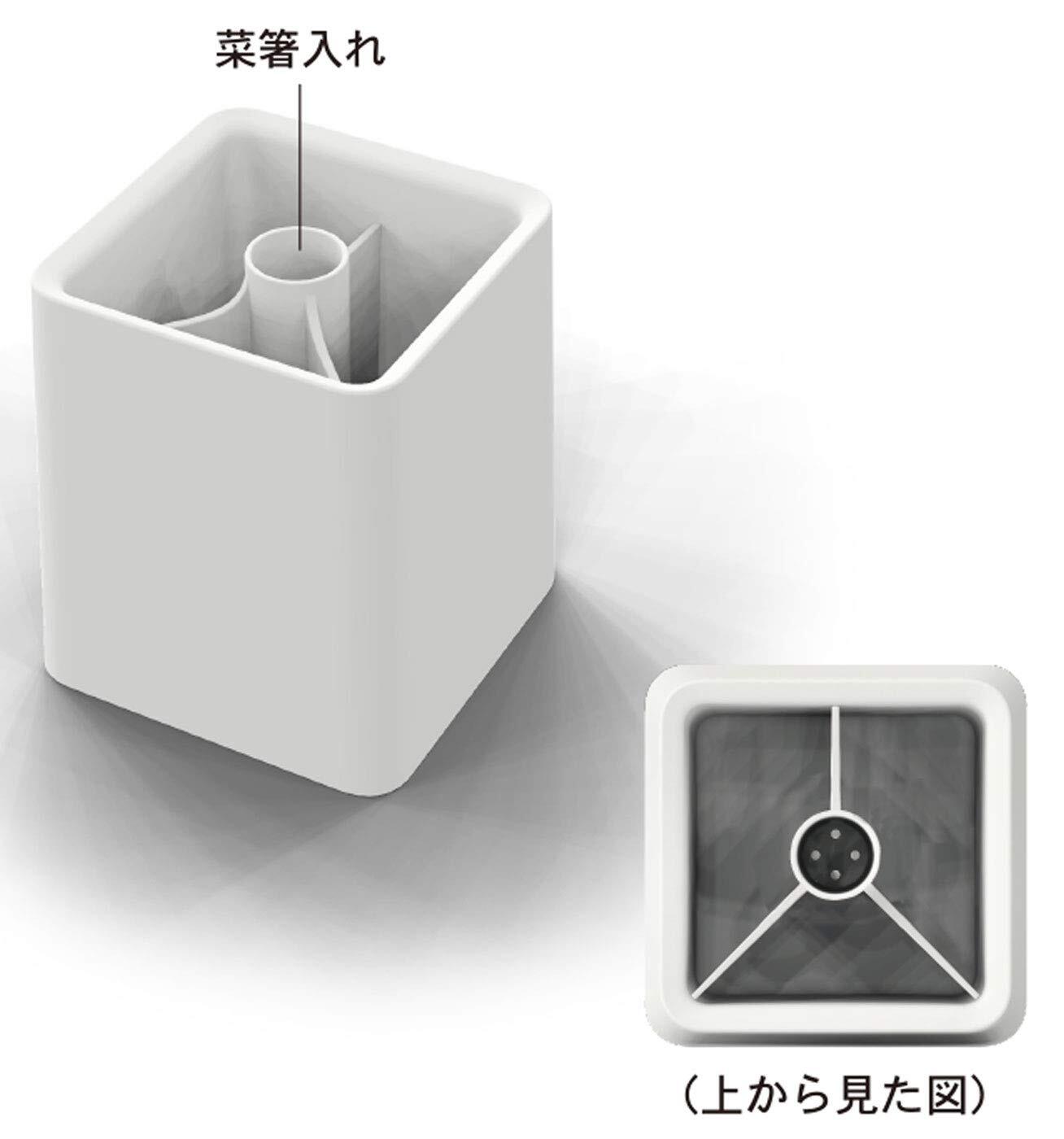 ▼キッチンツール(調理器具)を立てて収納 : お玉などのキッチンツールを立てて収納するスタンドです。スペースがなくても、コンパクトに収納できます。中の仕切りが3つに分かれていて、偏らずスッキリ収納できます。仕切り中央に菜箸立てもあります。