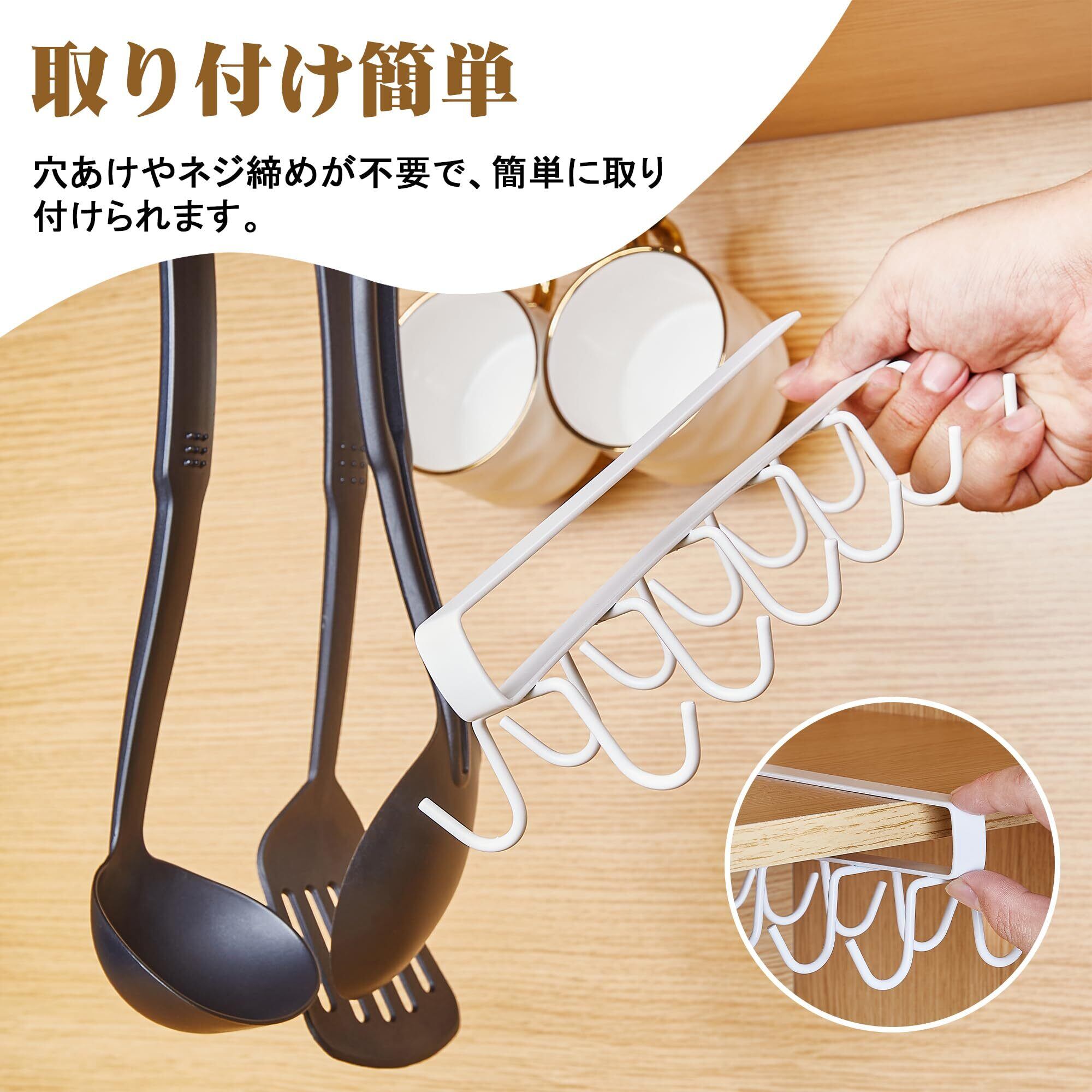 【高品質】キッチンツールフックは金属素材で作られ、丈夫で耐久性があります。各フックの強度が高く設計されるため、複数のツールを同時に掛けてもたわむことなく、しっかりと支えます。 また、防錆と防水性を兼ね備えるため、湿気の多いキッチン環境でも、長期間にわたって美しい状態を保てます。