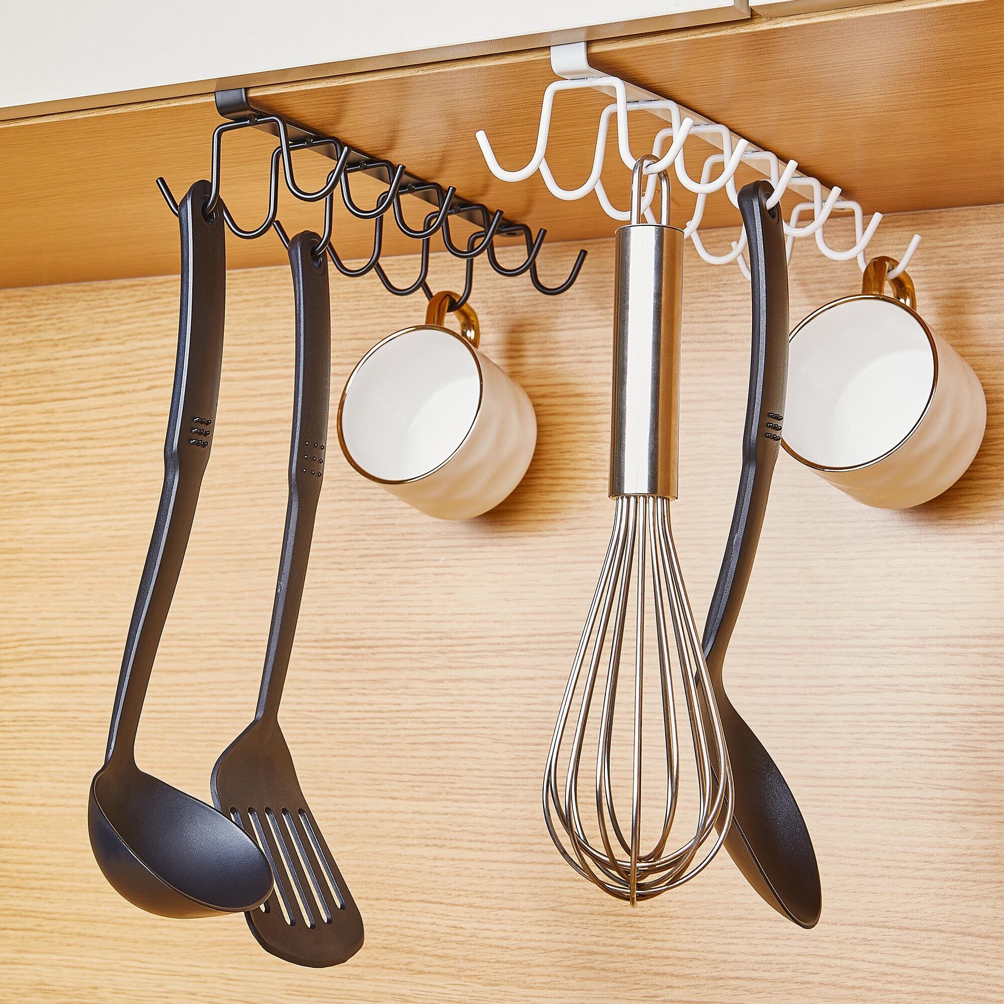 VECELO キッチンツールフック 6連 戸棚下キッチンツールフック 多機能収納 ドア 吊り下げタイプ 省スペース 頑丈で耐久性がある 穴あけなし 棚下 ネジなし ホワイト