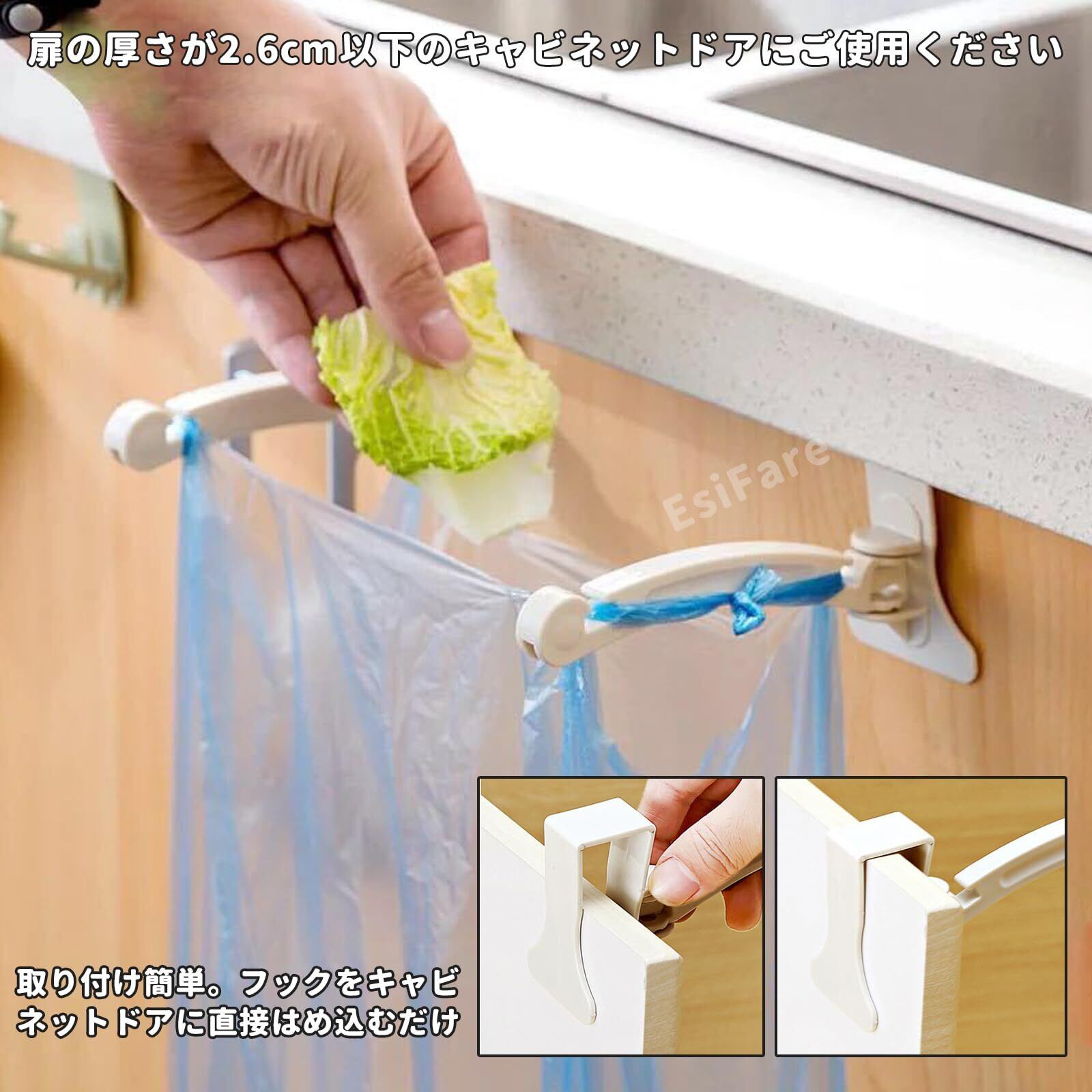 ゴミ袋 フック 扉 レジ袋ハンガー ゴミ箱 フック 2本セット 折りたたみ 取り付け簡単 落ちにくい 固定 省スペース キッチン/浴室/洗面台用 ゴミ袋ハンガー キッチン収納用品