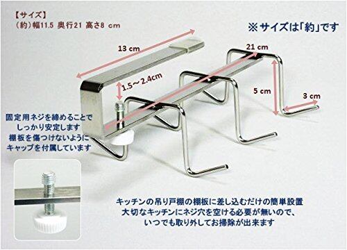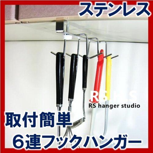 吊り戸棚の棚板に差し込んで、お玉などのツールが場所を取らずに掛けられる6連フックです