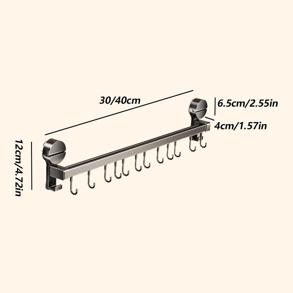 キッチンツールフック 吸盤式 炭素鋼+ABS キッチンラック 強力粘着 軽量 防水防錆 調理器具 キッチン用品ラック 鍋蓋置き 穴あけ不要 壁掛け 可動式フック 台所収納 強い収納力 可動式 簡単取付(グレー30cm)