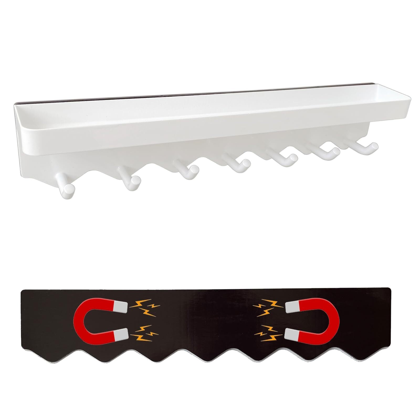 【新着商品】マグネット キッチンツールフック、強力磁石壁掛け 穴開け不要 玄関 キーフック、キッチン、バスルームフック 小物収納 車庫/作業場/ガーデンツール収納に (W28.5xD5xH6cm,トレイ付き)