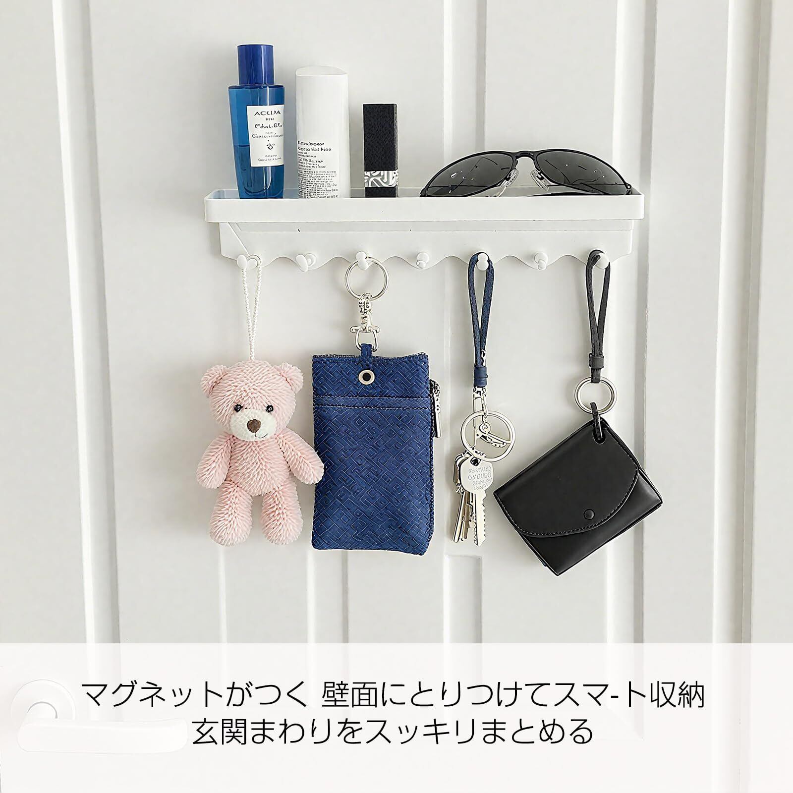 【日常生活に便利】玄関のキーフックとして使用でき、外出時に鍵を忘れることがなくなります。 キッチンで調理器具を吊るすためのキッチンツールフックとしても使用でき、ツールを清潔に保ち、簡単に取り出すことができます。 洗濯機や冷蔵庫の側面に物を掛けるのに最適です。 上部のトレイにはさらに多くの小物を収納できます。