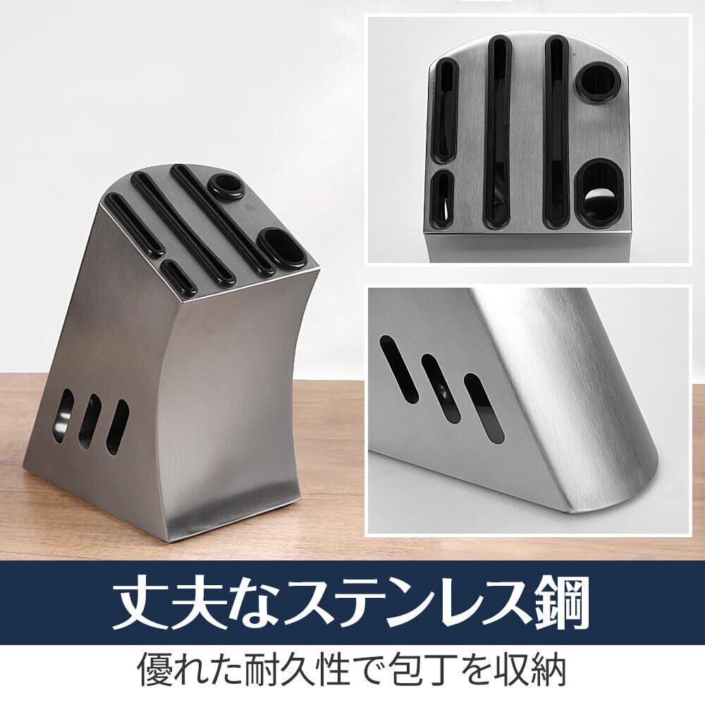ステンレス鋼製包丁スタンド スマート収納 キッチンバサミ 水切り 丸洗い 滑り止め付き 通気性 コンパクトサイズ
