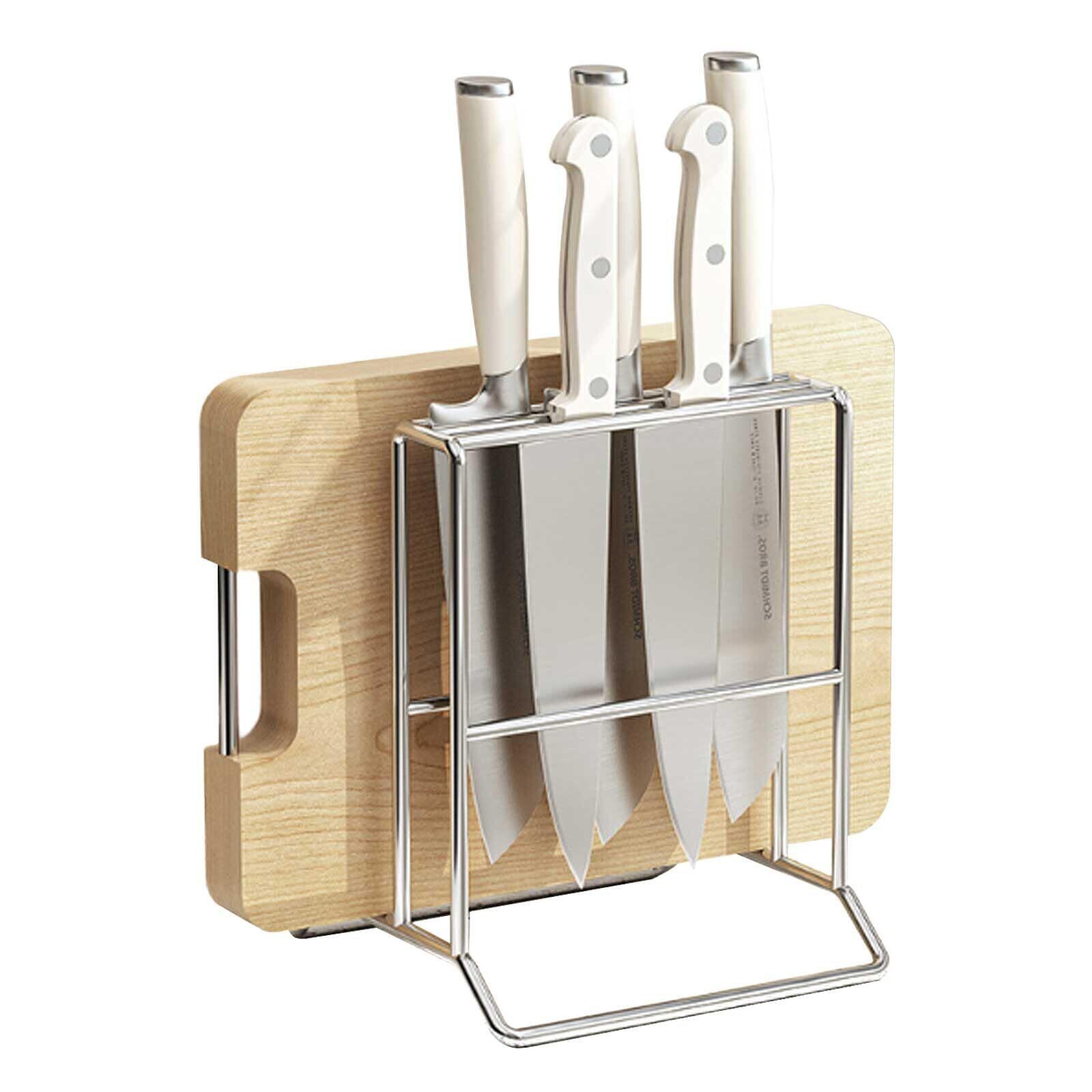 【省スペース】:包丁立て、まな板立てや鍋蓋スタンドを一体化して、様々な種類の包丁、ナイフ、まな板が収納できるおしゃれな包丁スタンドです。コンパクト設計で狭い日本式キッチンにも設置可能。