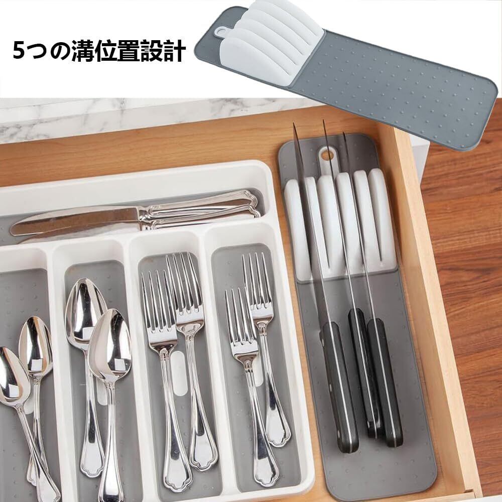 滑り止め:刃物台マットの底部には滑り止め、ソフトグリップベースが装備されており、キッチンテーブルや引き出しにしっかりと吸着でき、刃物台マットの使用中の滑りを防止し、刃物に安定した支持を提供することができる。