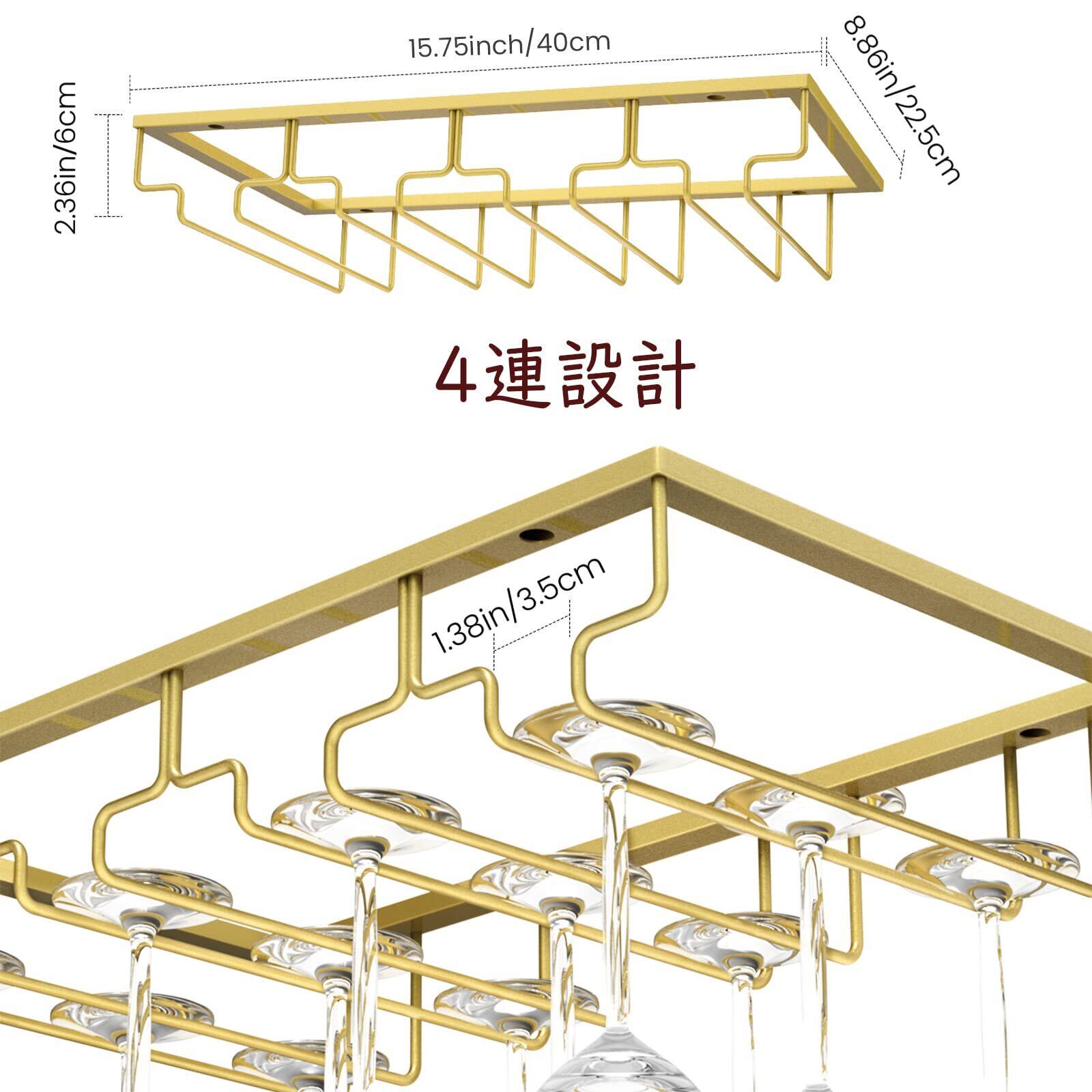 ワイングラスホルダー Nuovoware グラスホルダー グラスハンガー 吊り下げ グラスラック ワイヤー 4連 乾燥/水切り 収納口幅:8.89cm 適用グラスフットの幅:4-9cm スパークリングわいん、シャンパン用のグラスに 家庭 業務用 ゴールド