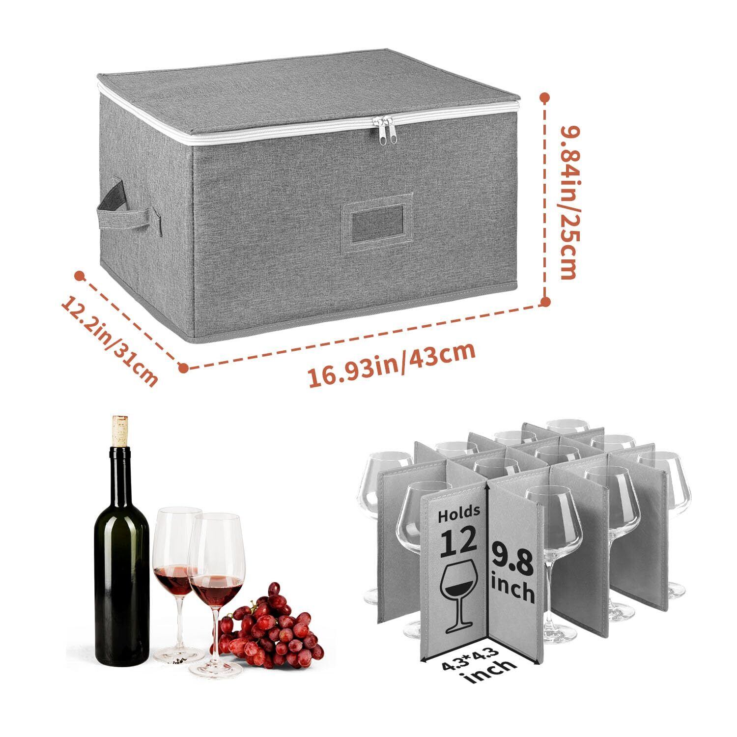 【大容量グラス 収納】仕切り付きのワイングラス収納ボックスは最大12個のワイングラスを収納できます。サイズ:16.9インチ x 12インチ x 9.8インチ、各コンパートメントの寸法は4.3インチ x 4.3インチ x 9.8インチです。 完璧なサイズの12個の裏地付きコンパートメントには、すべてのグラスを収納できます