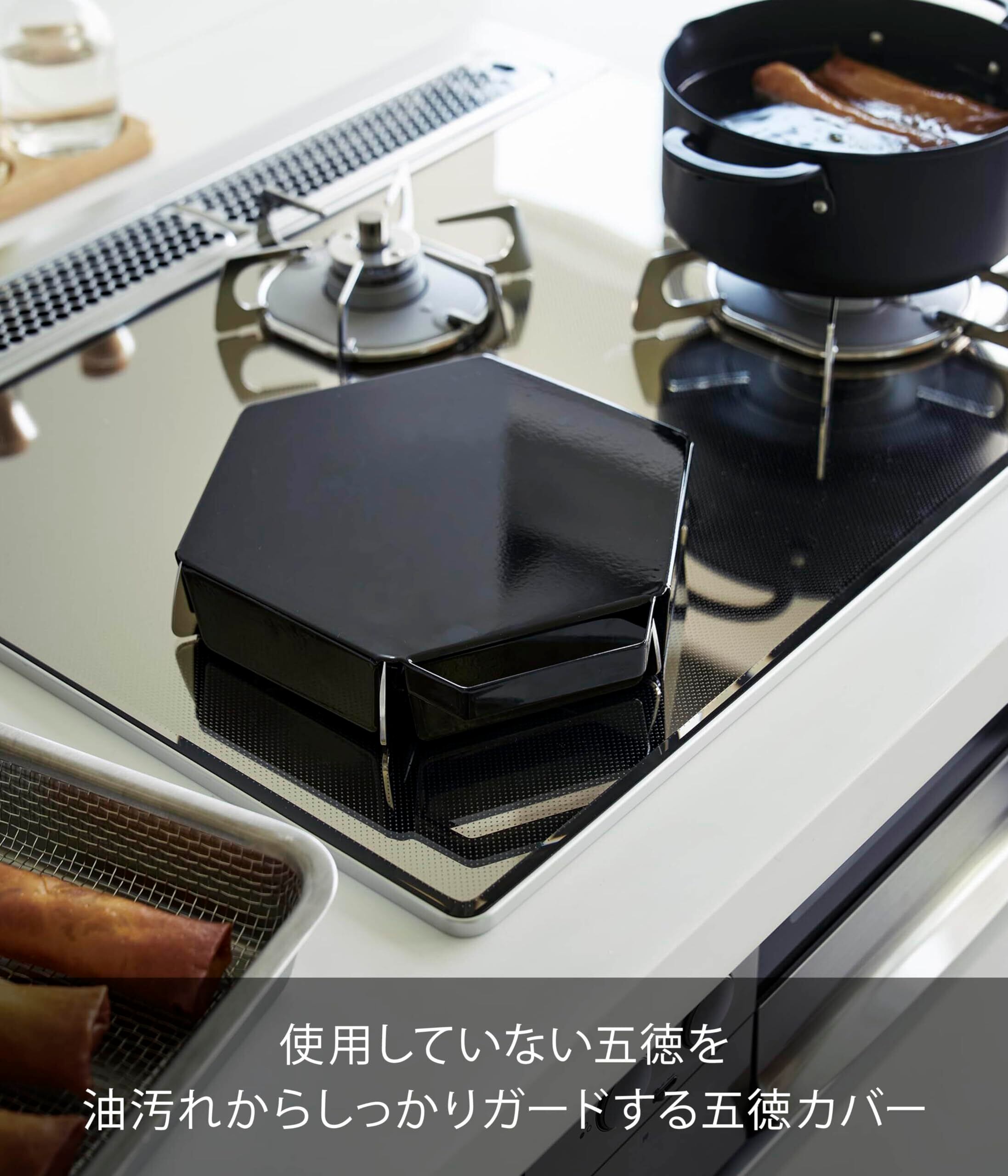 山崎実業(Yamazaki) 立てて置ける 五徳カバー ブラック W21.8×D21.7×H4cm(ハンドル含む) タワー tower 汚れ防止 油はね防止 1414