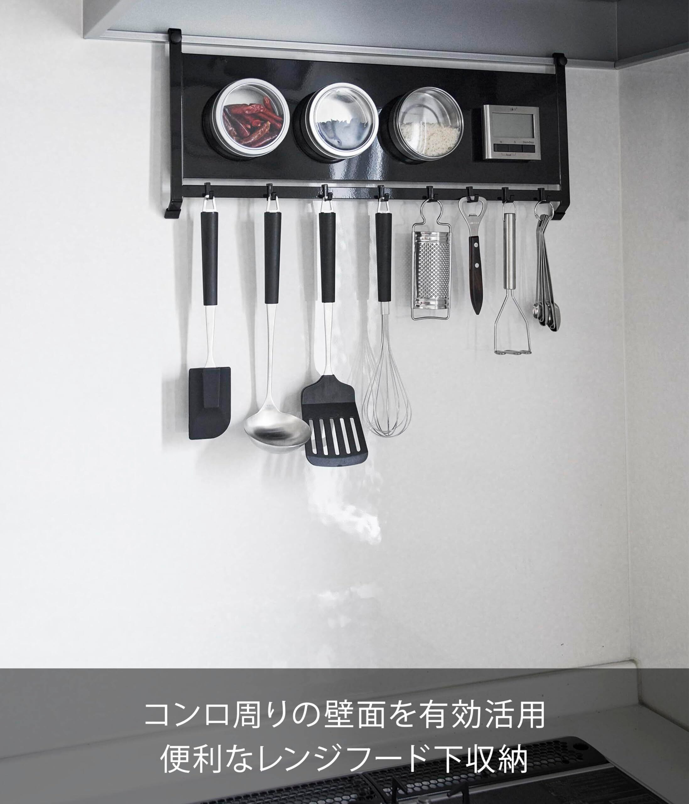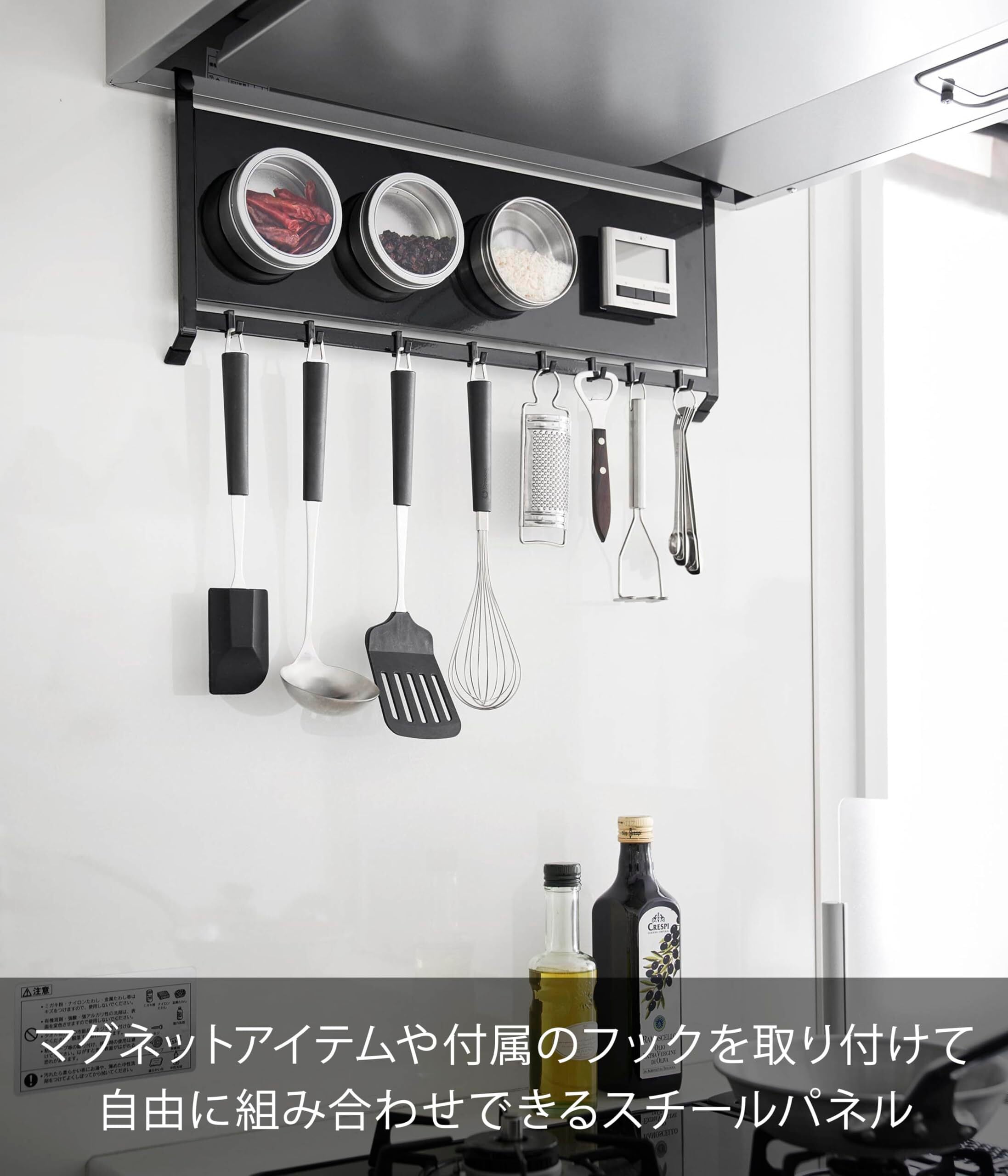 【2022最新】山崎実業(Yamazaki) レンジフード スチールパネル & フック ブラック W55.3×D4.3×H22.7cm(フック含む) タワー tower 浮かせる収納 キッチンパネル マグネット 収納 1734