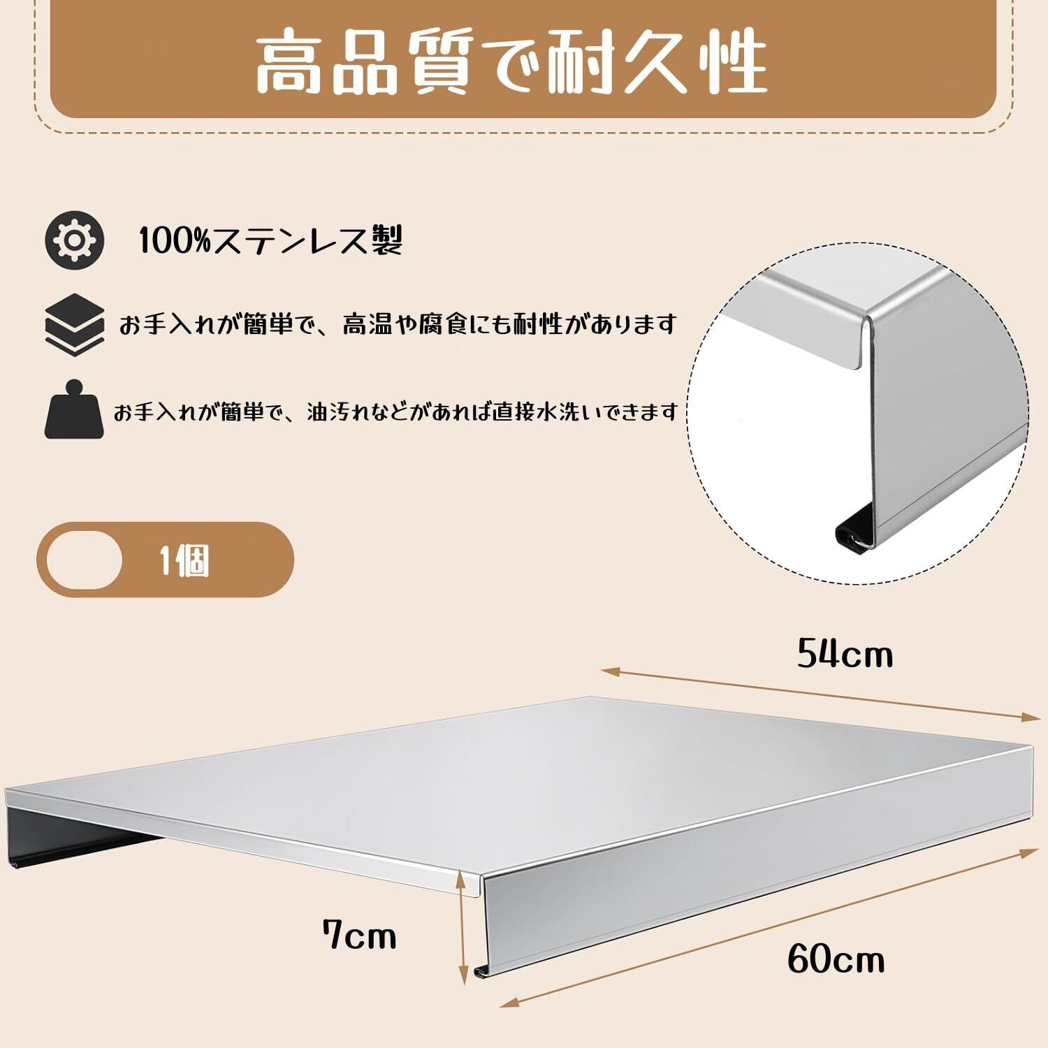 ガスコンロカバー ステンレス製 レンジカバー 2口よ3口に対応 作業台 お手入れが簡単 作業場が拡大 耐久性 多機能 シルバー(60x54x7cm)