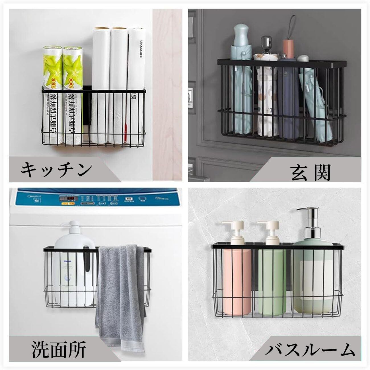 【用途が広い】1、傘やマスクなどの小物を玄関に収納可能。 2、バスルームに入浴剤、ヘアケア用品、その他の備品を保管できます。 3、 ヘアアイロン、ヘアドライヤー、掃除用品、その他の消耗品を洗面所に保管できます。 4、いくつかの本、雑誌、その他の本を保管することもできます。