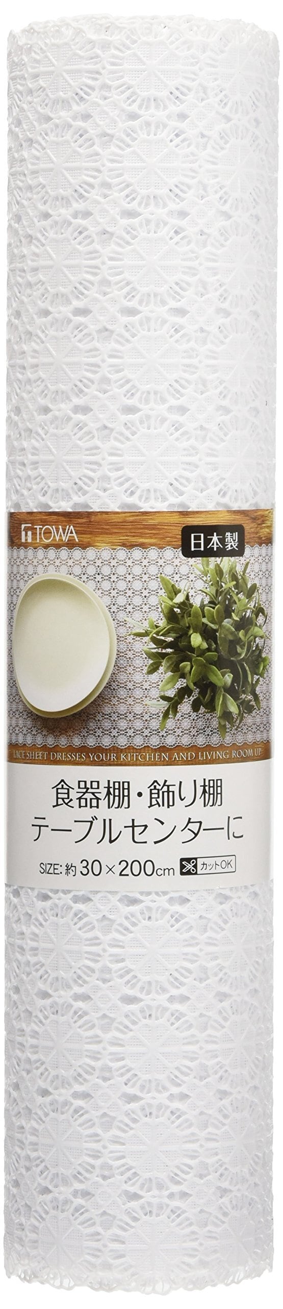 東和産業 食器棚シート レースシート タイム 30×200cm ホワイト