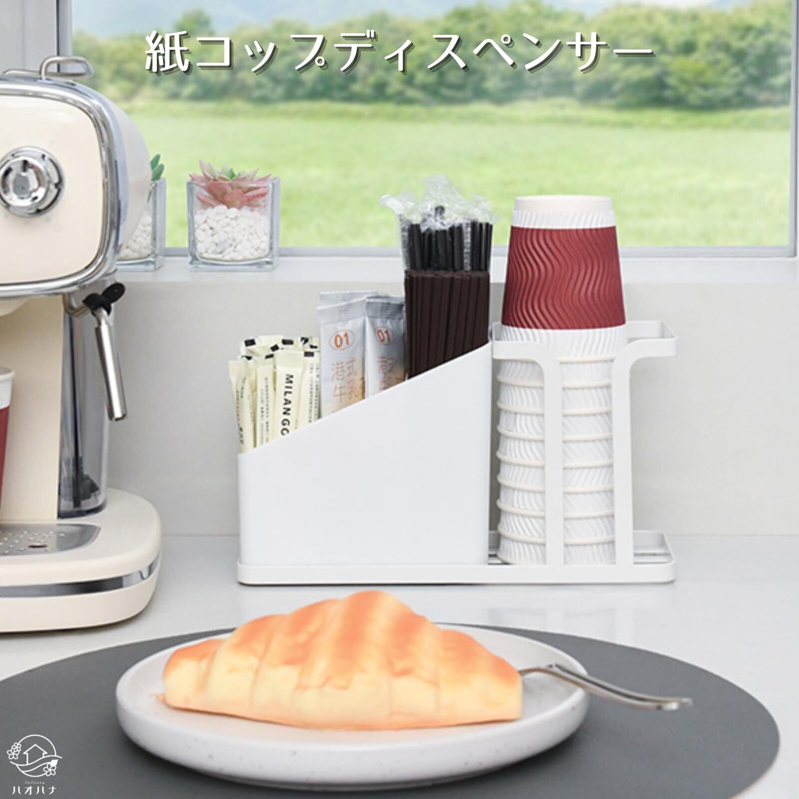 HaOhana 紙コップホルダー カップディスペンサー ミニ 使い捨てカップ スタンド 収納 マドラー シュガースティック コーヒー (ブラック)