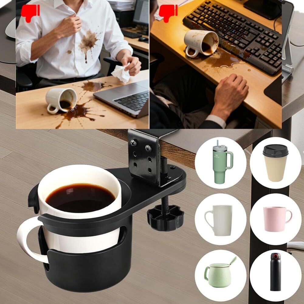 【数量限定】LIKENNY ドリンクホルダー フック デスク デスク整理 カップ ネジ式 クランプ ン掛け 360度回転収納 カップホルダー 三段階調節 クリップ式 取り外し可能 収納ラック スペース節約 机固定 滑り止め 簡単設置 コーヒーカップ/グラスセラミックカップ/ドリンクボトル/スマートフォン/リモコンに対応(ブラック)