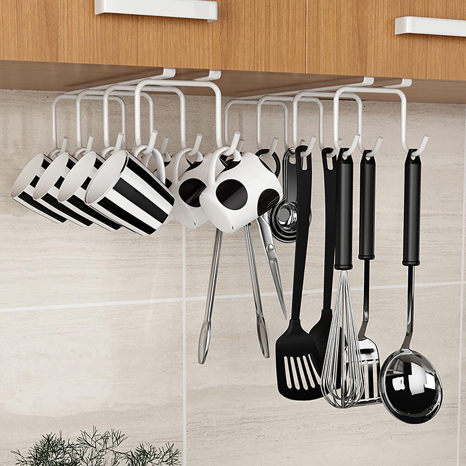【在庫処分】カップホルダー 戸棚下収納ラック 差し込み式 吊り下げラック キッチンツールフック 取り付け簡単 カップ収納 ディスプレイ 水切りフック 小物収納 雑貨整理 家庭 業務用