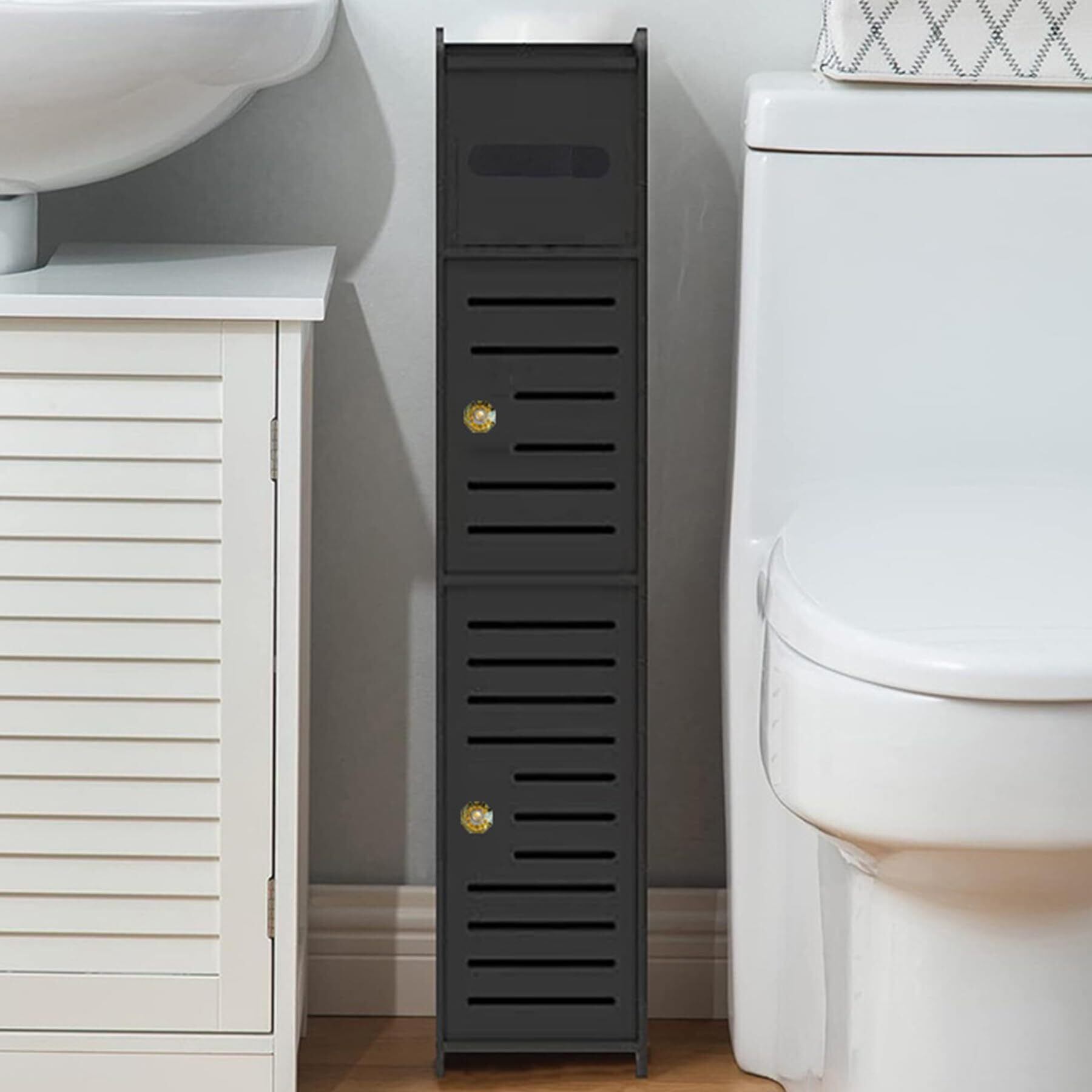 トイレ 収納 隙間収納 スリム 収納 防水 防湿 組立簡単 玄関/洗面所/寝室/書斎 省スペース バスルーム収納棚 (ブラック, 15*15*80cm(2つのドア))