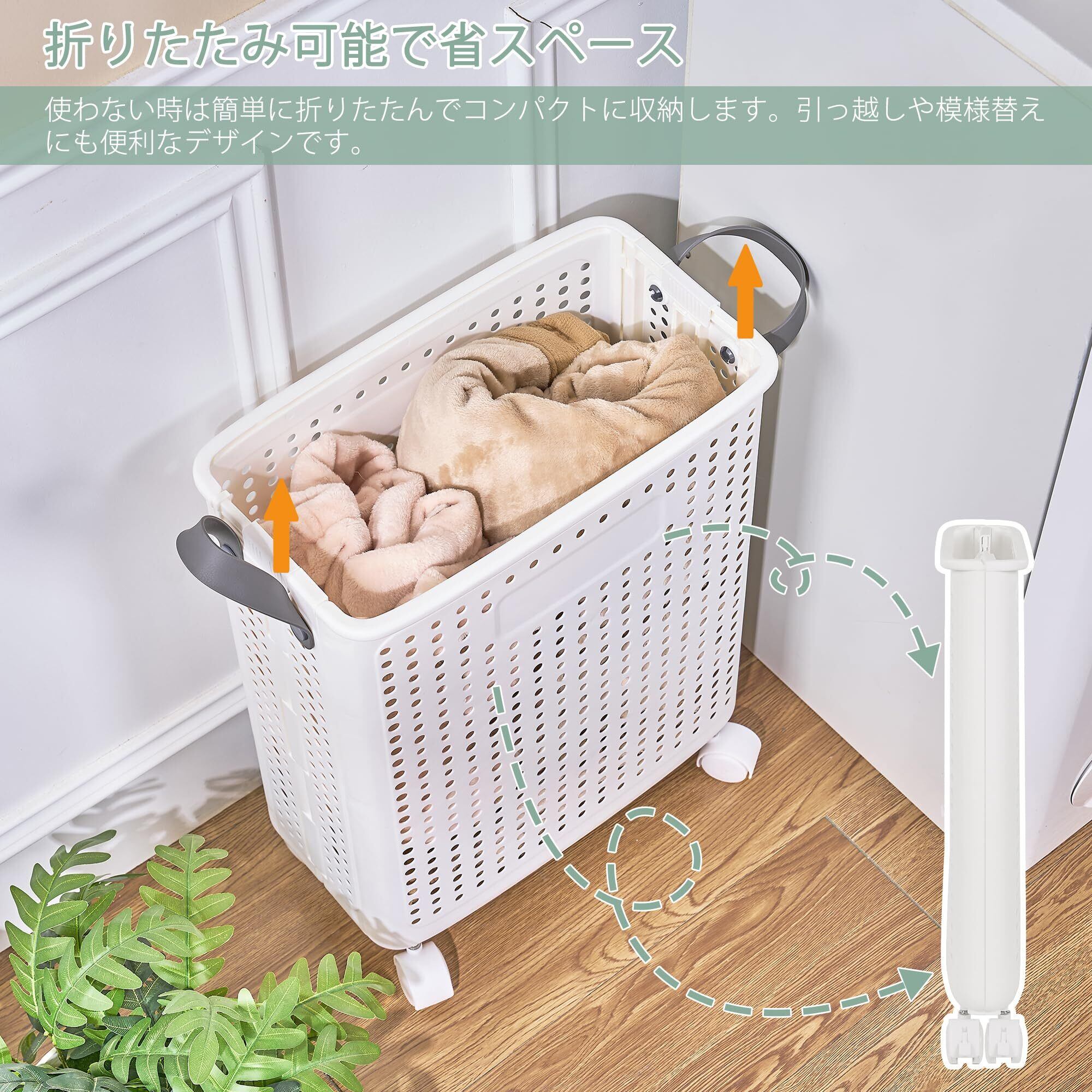 美しさと実用性を兼ね備えた、スマートなランドリーバスケット。折りたたみ収納&静音キャスターで快適な暮らしへ。