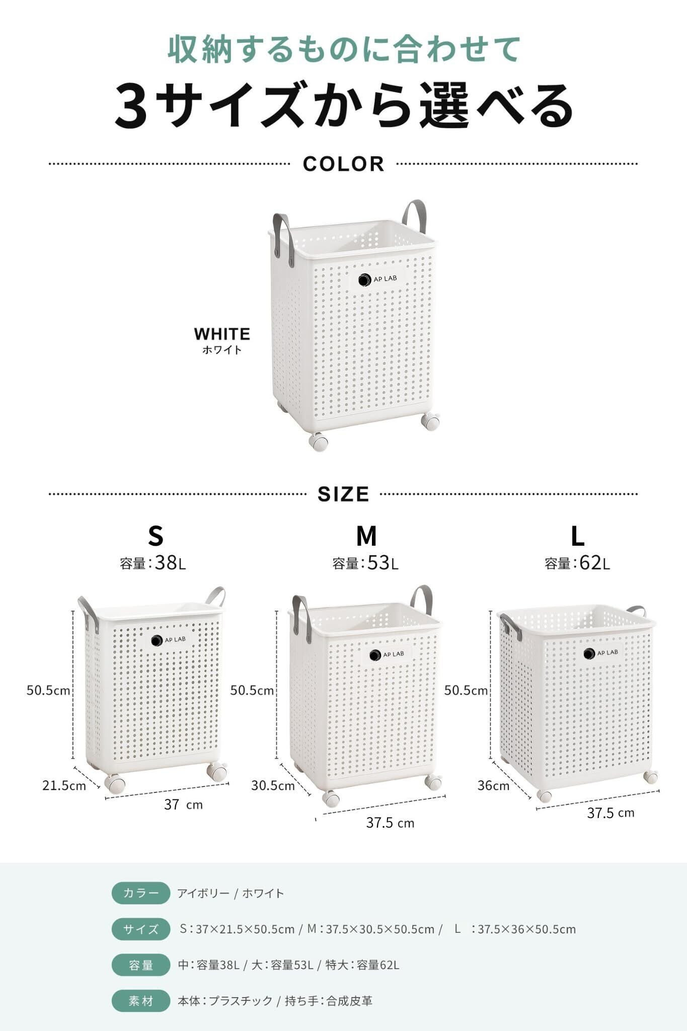洗濯かご 折りたたみ [使わない時はスリムに収納] キャスター付き 洗濯物カゴ ランドリーバスケット 大容量 洗濯物入れ ランドリー収納 アイボリーホワイト (M)