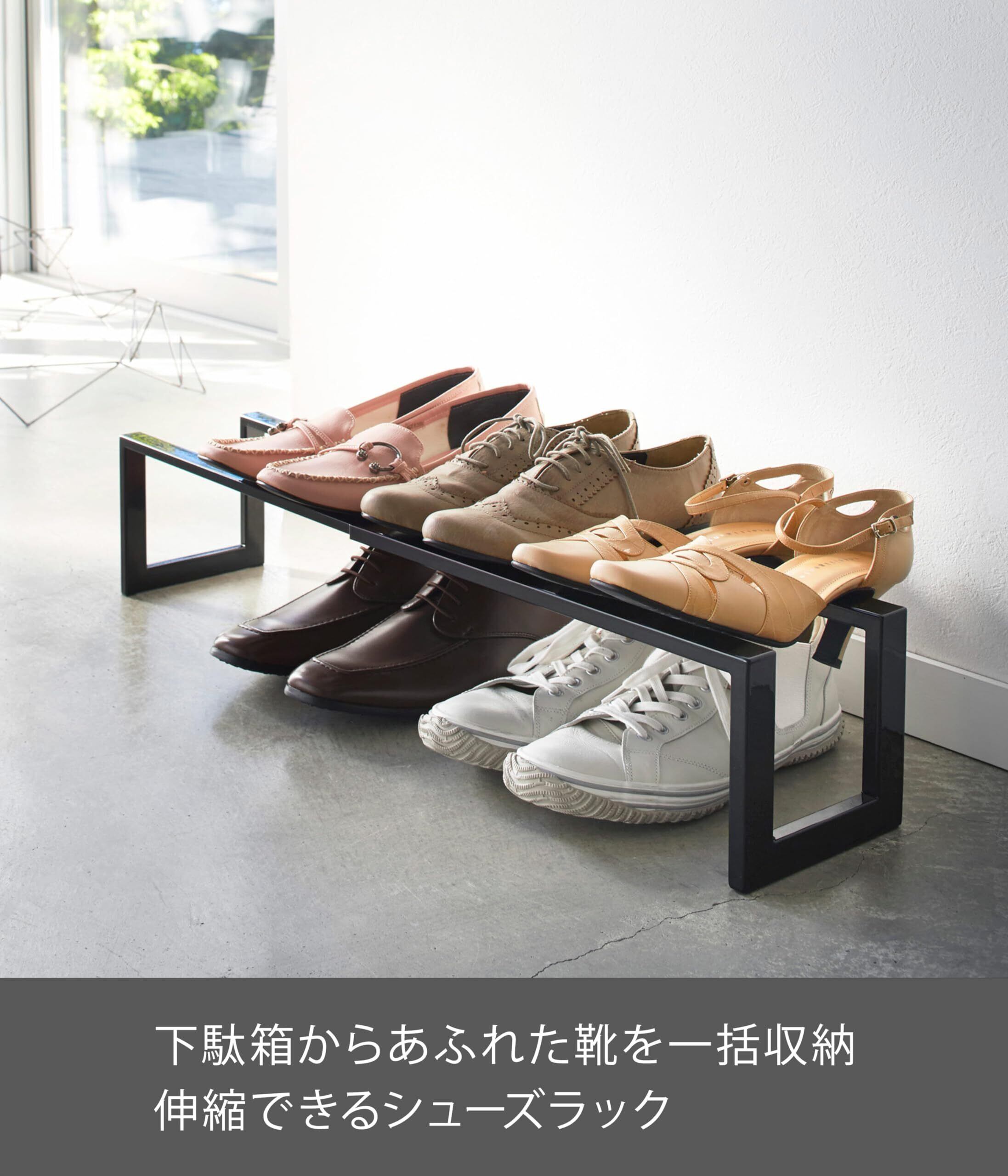 【数量限定】山崎実業(Yamazaki) 伸縮シューズラック ライン 1段 ブラック 3189