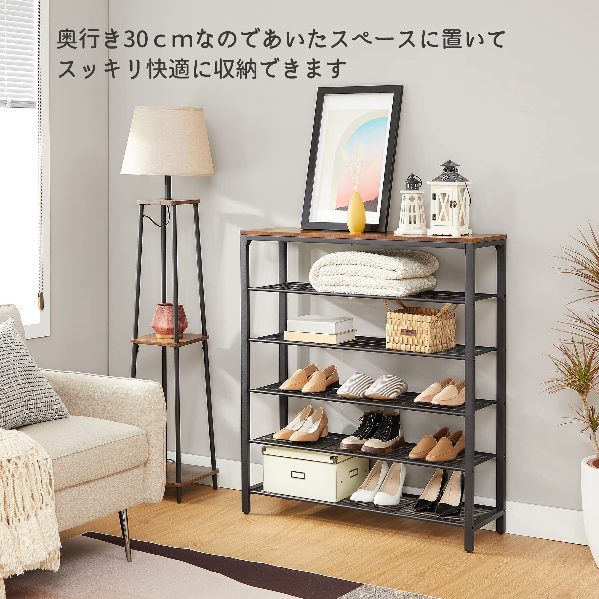 VASAGLEシューズラック 収納ラック 6段 下駄箱 玄関収納 収納家具 ラック 靴収納 靴箱 収納棚 省スペース 通気性 奥行30cmLBS016B01