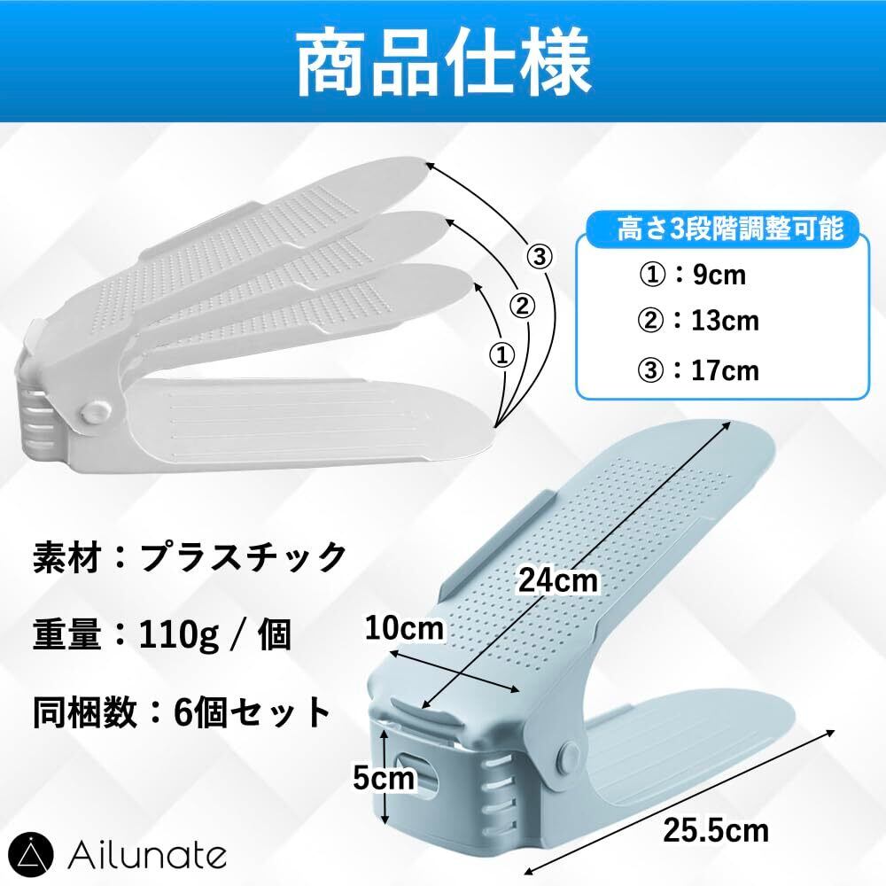 【人気商品】Ailunate 靴 収納 靴箱 下駄箱 シューズホルダー 省スペース シューズラック 靴ホルダー 玄関 縦 2段 くつ 重ねる 6個セット (ホワイト)