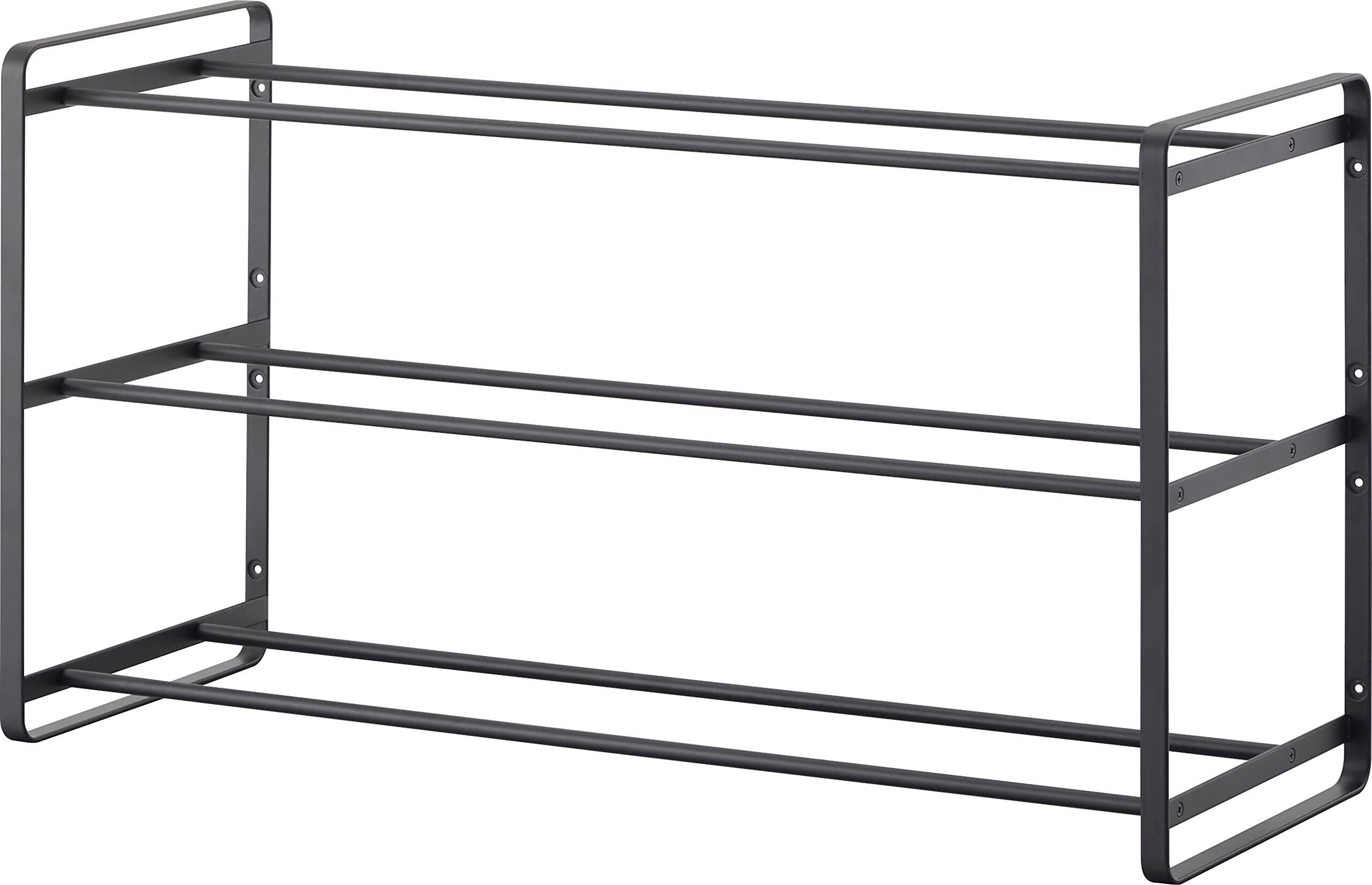 山崎実業(Yamazaki) 【 石こうボードピンセット・木ネジ 付属 】 石こうボード壁対応 ウォール シューズラック 3段 ブラック 約W67.3×D25×H37.6cm タワー tower 浮かせる 靴収納 お掃除ラクラク フック付き 4507