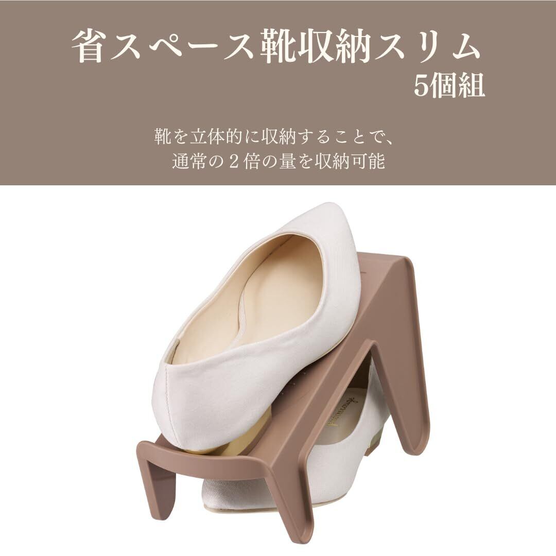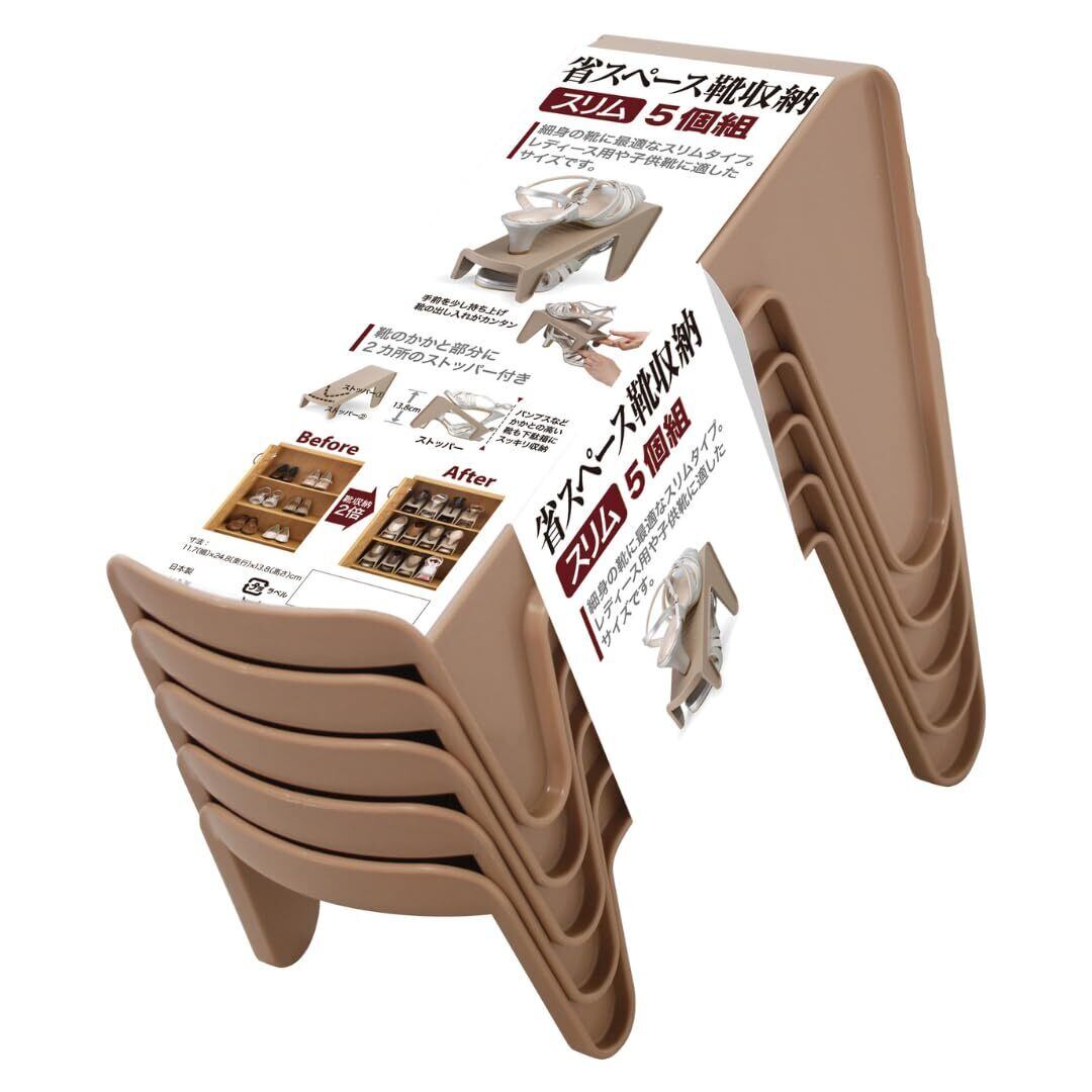 伊勢藤(ISETO) シューズラック 省スペース靴収納スリム (5個組) ブラウン 幅11.7×奥行24.8×高さ13.8cm 5個セット 日本製 ストッパー付 男女兼用 玄関 収納 下駄箱 収納量2倍 省スぺ スニーカー 革靴 ハイカット I-557