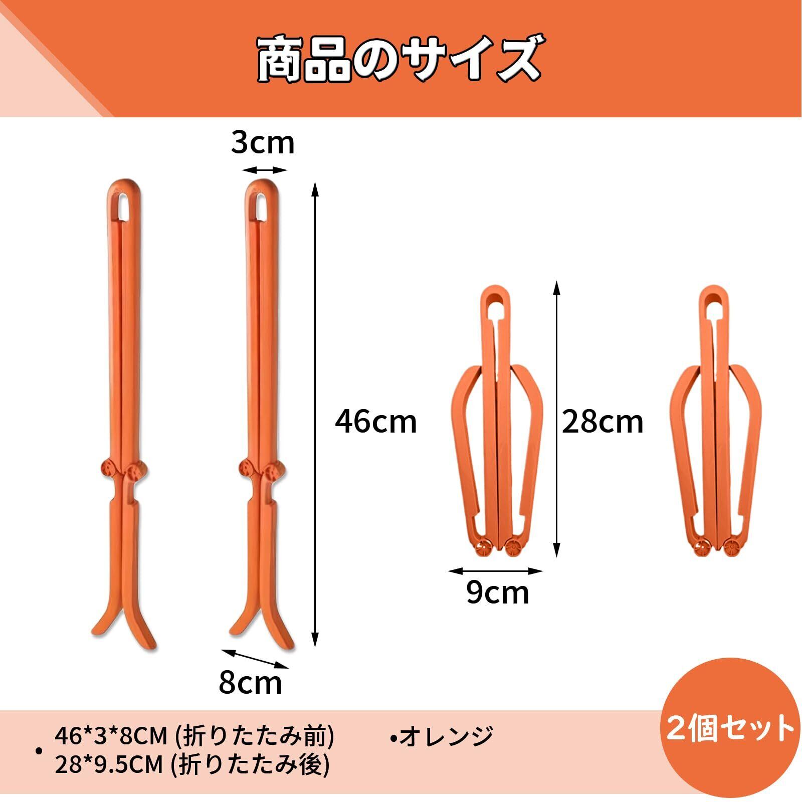 【実用セット】:ブーツラック2個が含まれています。 寸法: 46 x 3 cm (折りたたみ時 28 x 9.5 cm)。 色: オレンジ。