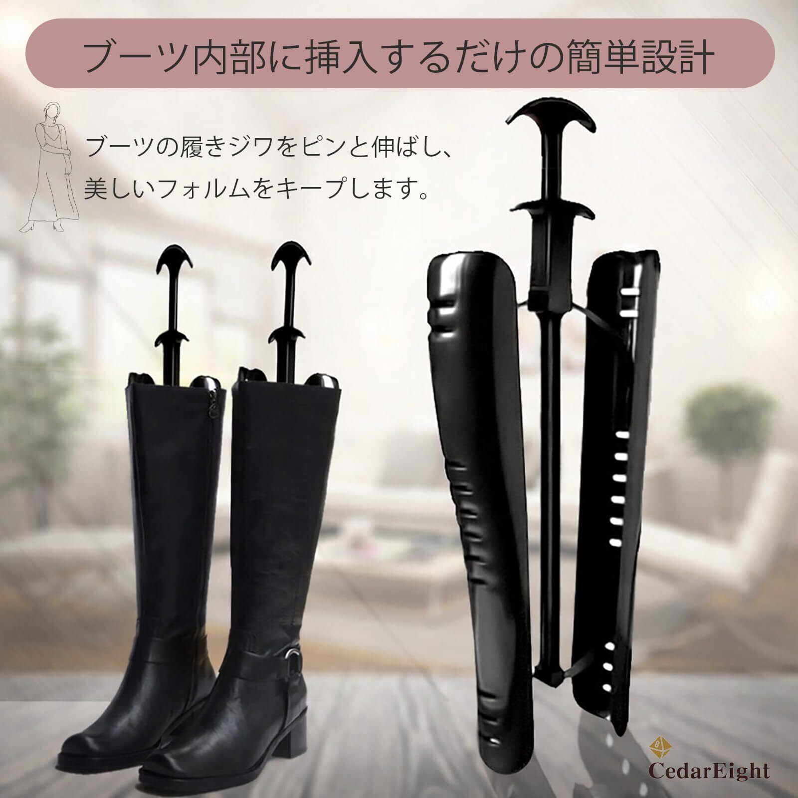 [シダーエイト] 型崩れ防止 ブーツ用シューキーパー プラスチック製 バネ式 シワが伸びて倒れない ロングブーツ ブーツスタンド 1足用 2個1セット