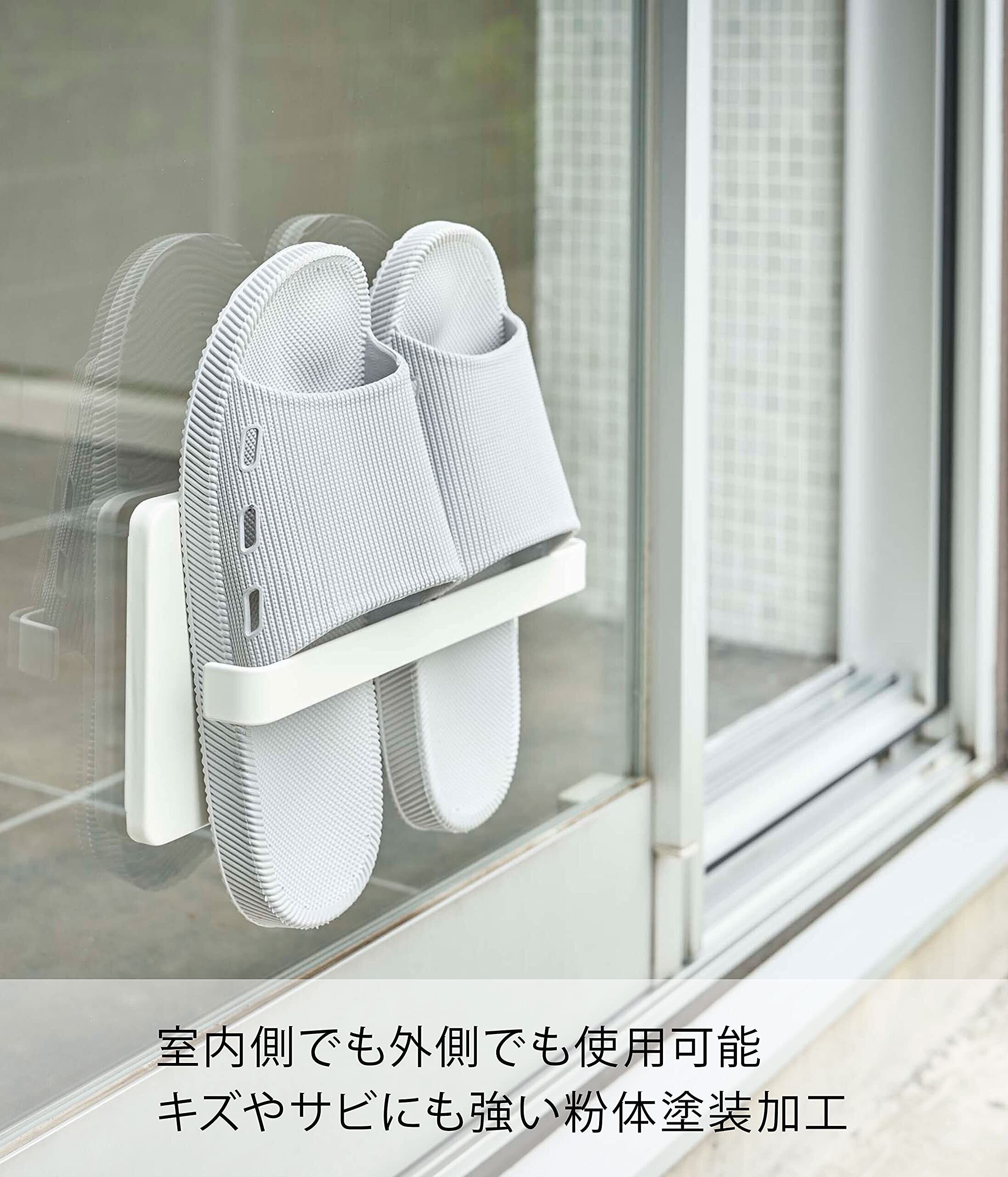 【新着商品】山崎実業(Yamazaki) ツーウェイベランダスリッパラック ホワイト 約W25XD5XH12.5cm プレート 吸盤取り付け 木ネジ付きで壁面収納も可 4965