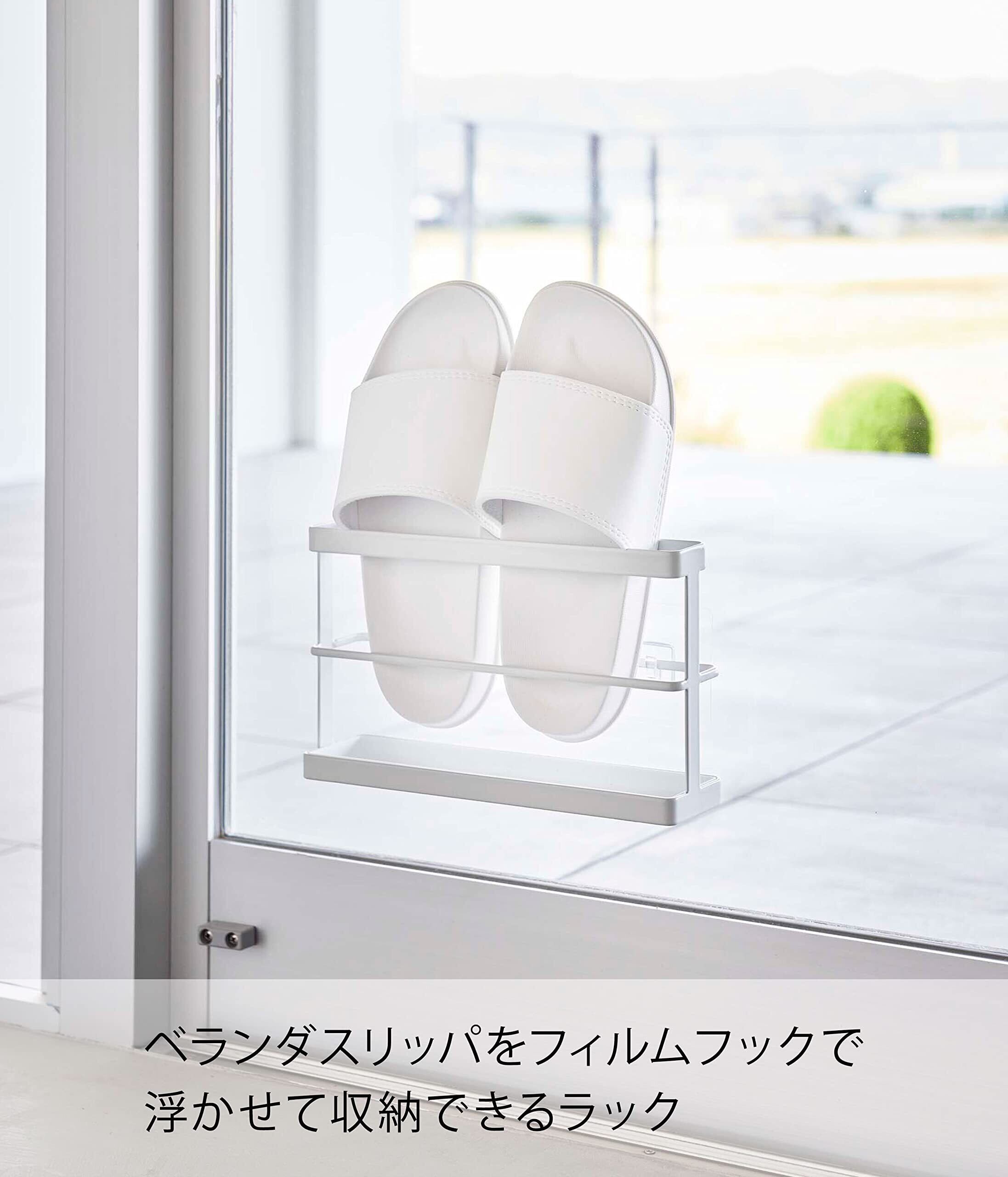 フィルムフックで窓ガラスに簡単取り付け!雨・風を避けて屋内外でベランダスリッパを浮かせて収納!使う場所に合わせてフィルムフックで窓に付けても、そのまま置いても使える2way仕様。