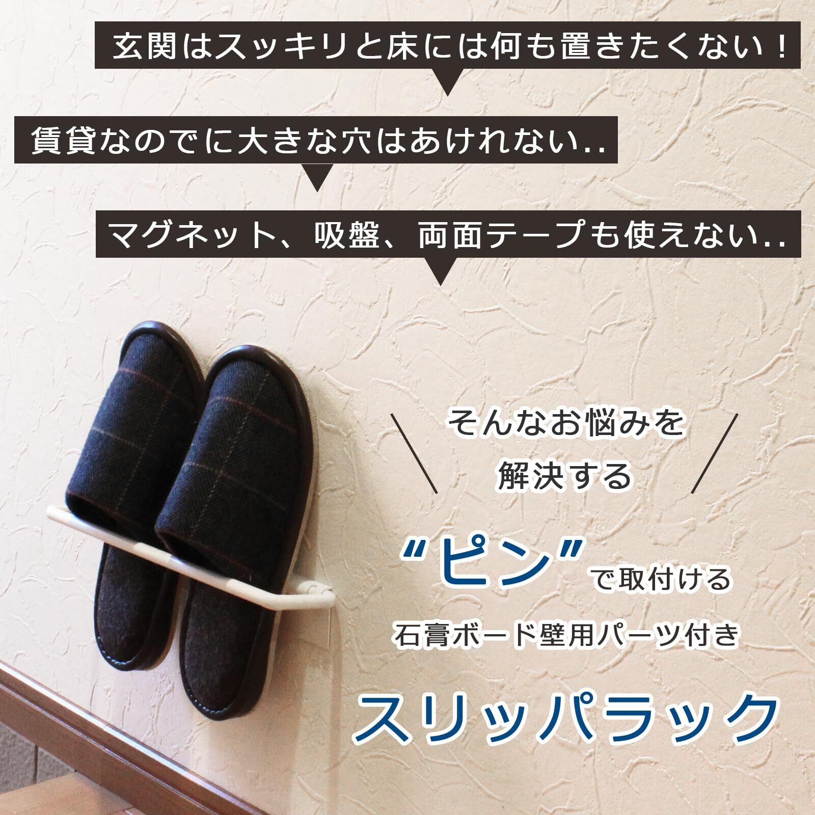 LBストア 石膏ボード壁専用 スリッパラック 壁掛け ピンで取付ける ホワイト (1足用)